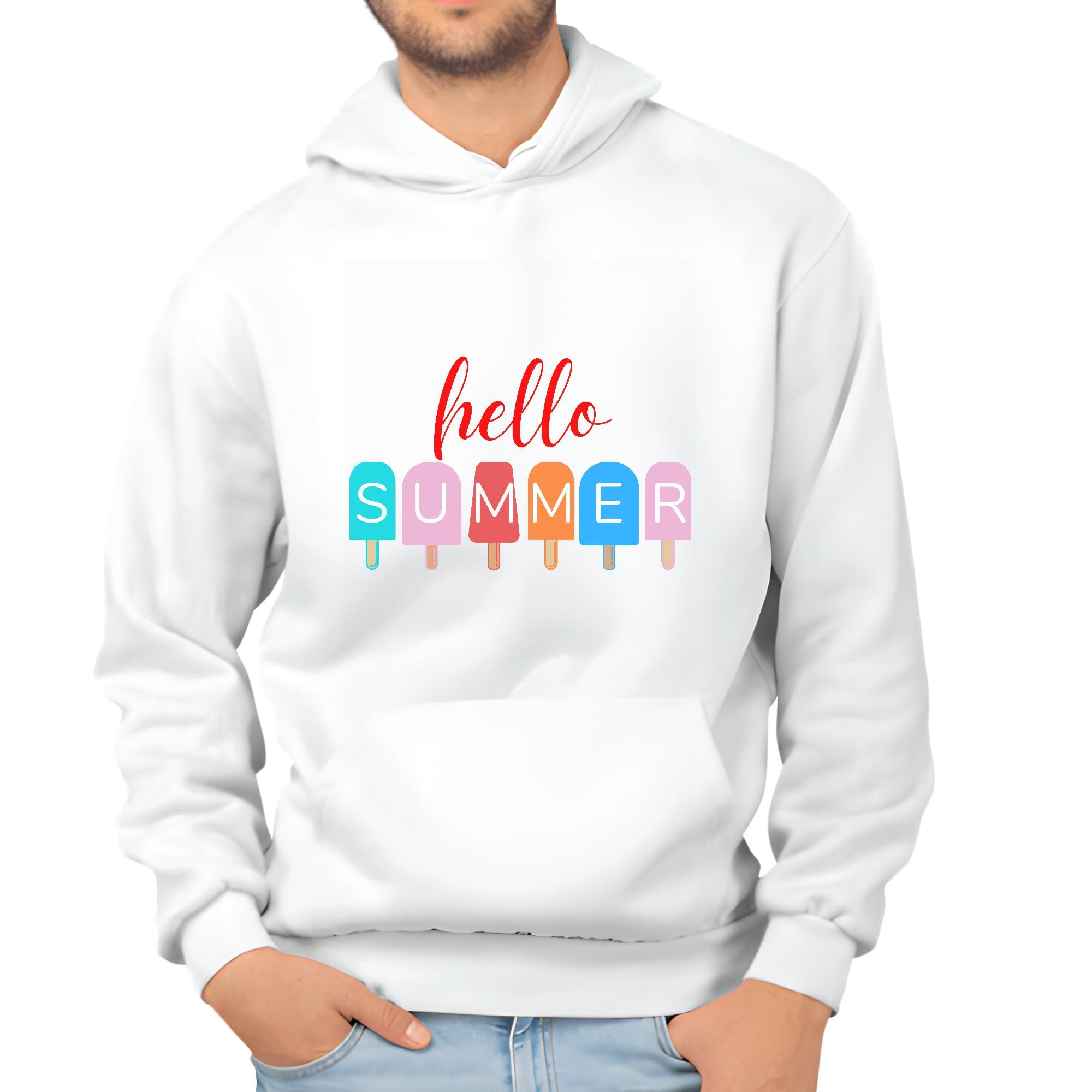 Summer Vacation Gift Idea Hello Ice Cream White and Muticolor Unisex Hoodie