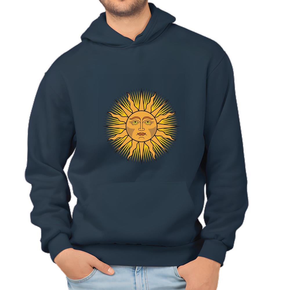 Sun Colored Sun Human Face Symbol Funny Jokes Solar for Friends Coworkers Navy and Muticolor Unisex Hoodie