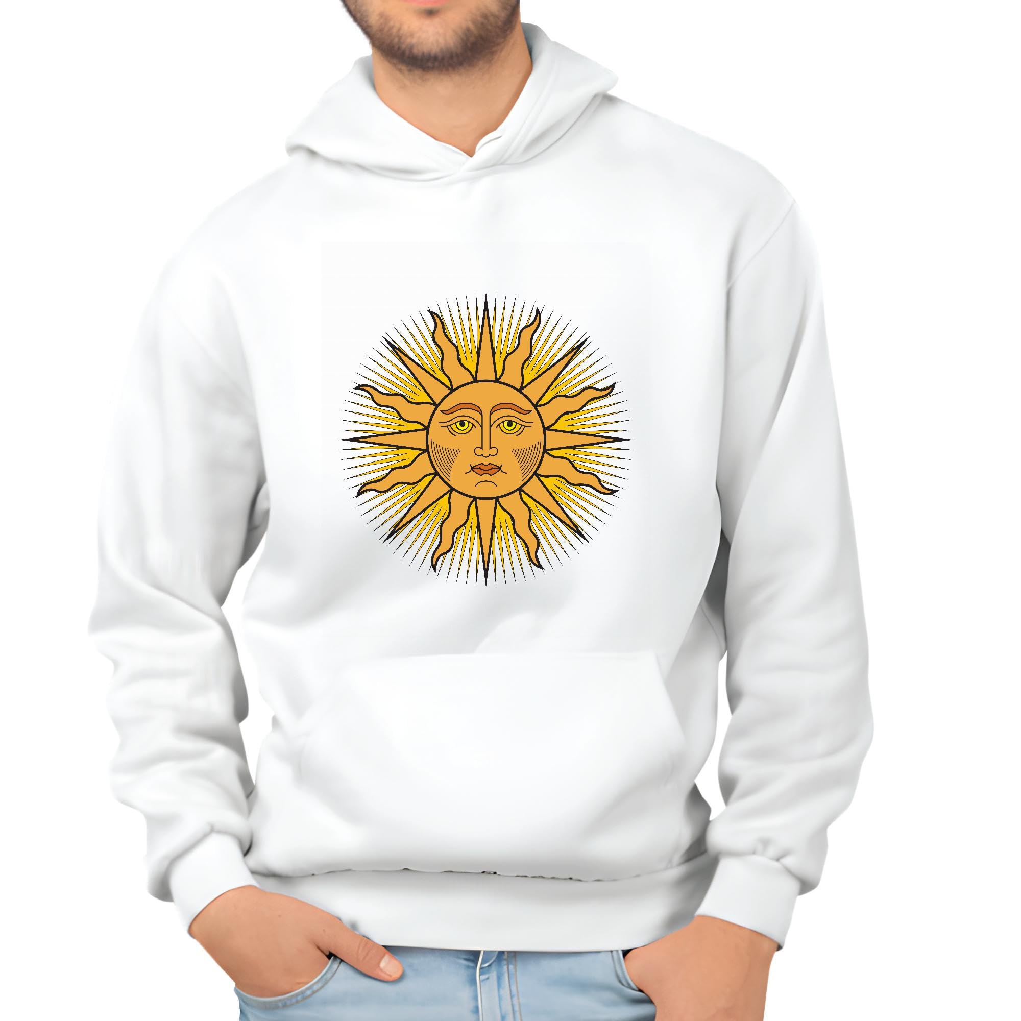 Sun Colored Sun Human Face Symbol Funny Jokes Solar for Friends Coworkers White and Muticolor Unisex Hoodie