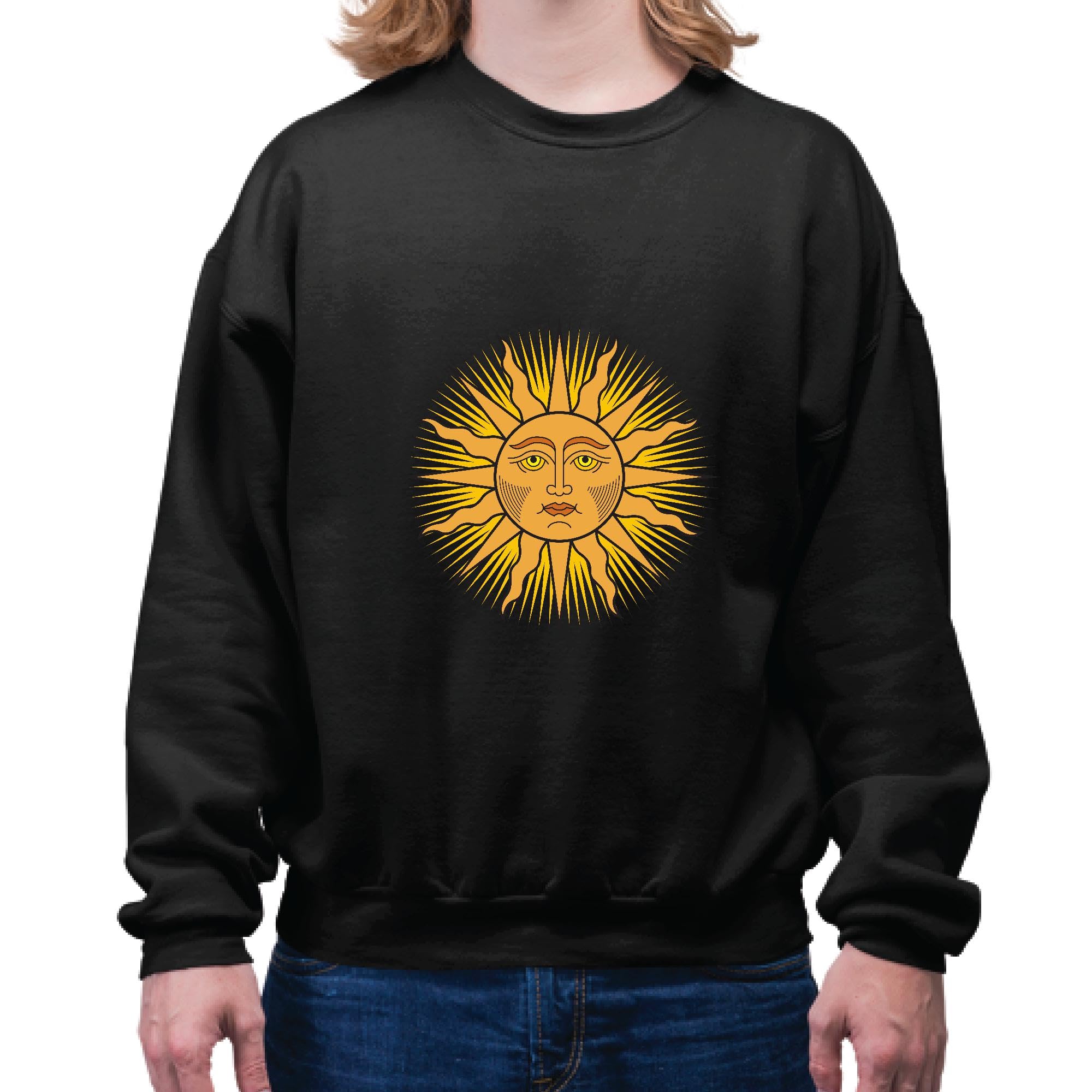 Sun Colored Sun Human Face Symbol Funny Jokes Solar for Friends Coworkers Navy Black Muticolor Unisex Sweatshirt