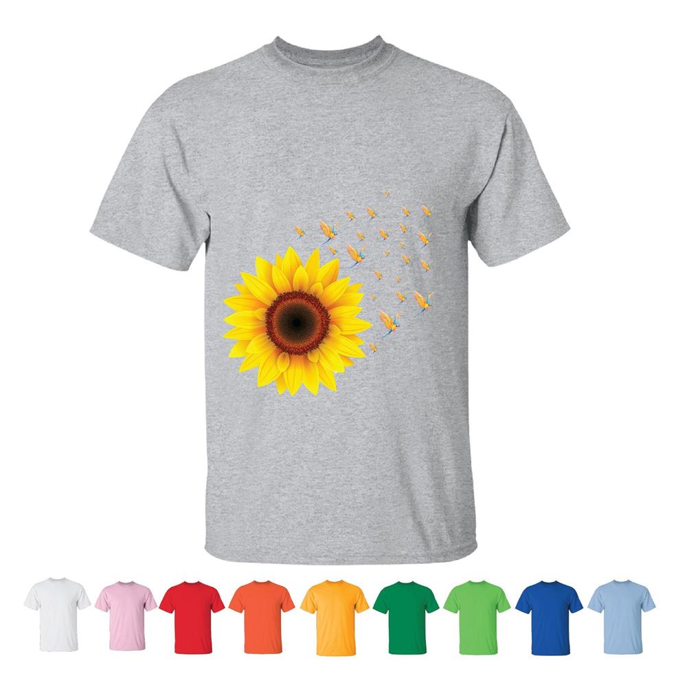 Sunflower BirdsFloral Gift for Avian Lovers Womens T Men Women White Gray T shirt
