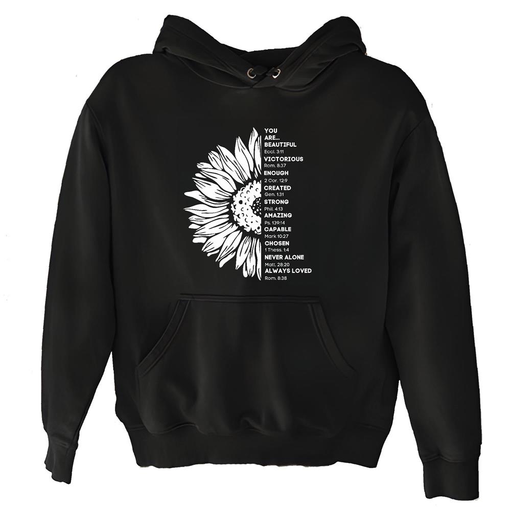 Sunflower Christian religious inspirational thankful grateful blessed Black and Muticolor Unisex Hoodie