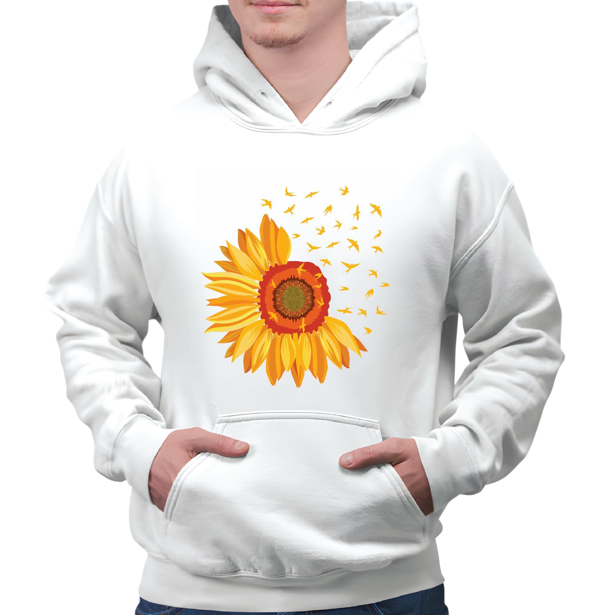 Sunflower Birds Gift Perfect Floral Gift for Bird Lovers White and Muticolor Unisex Hoodie