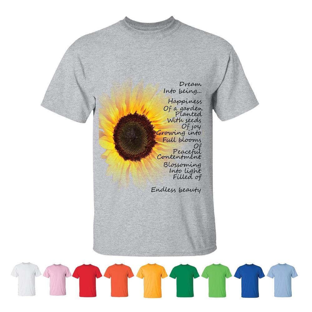 Sunflower Dream Poem Gift for Inspirational Poetry Lovers Men Women White Gray T shirt