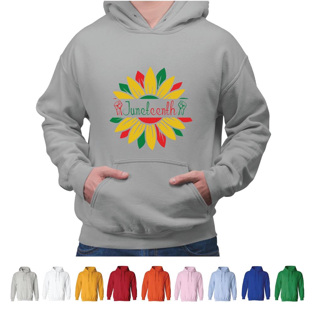 Sunflower Fist Juneteenth Black History for African American Gray and Muticolor Unisex Hoodie