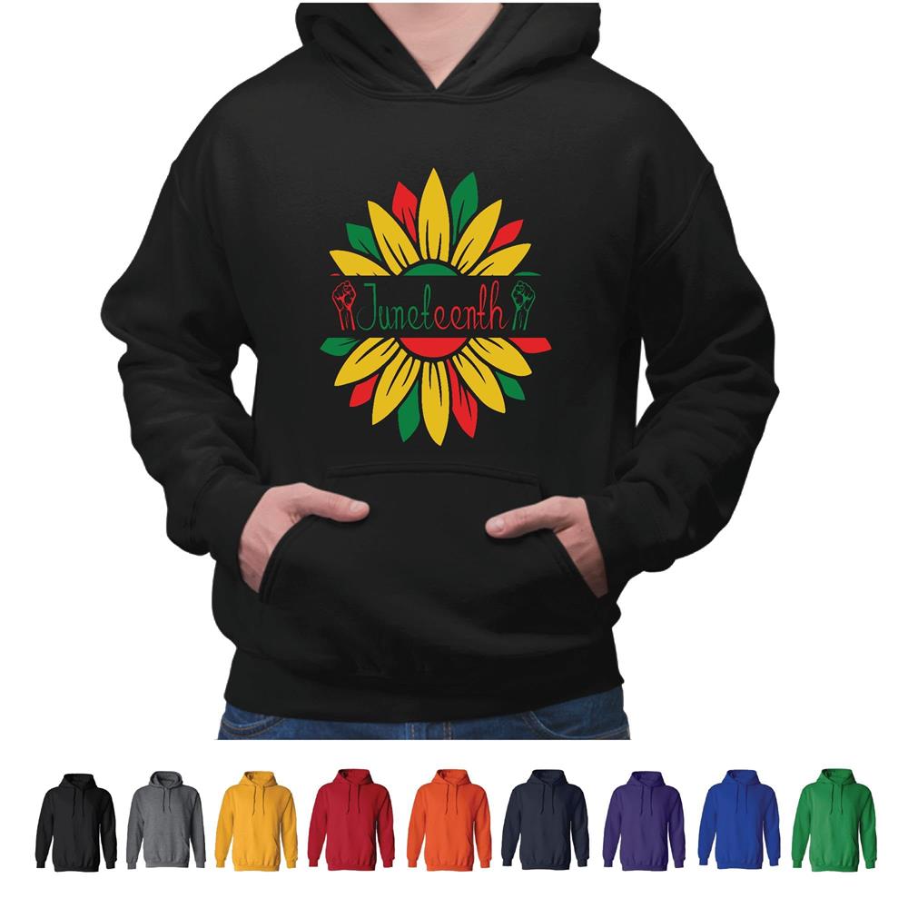Sunflower Fist Juneteenth Black History for African American Black and Muticolor Unisex Hoodie