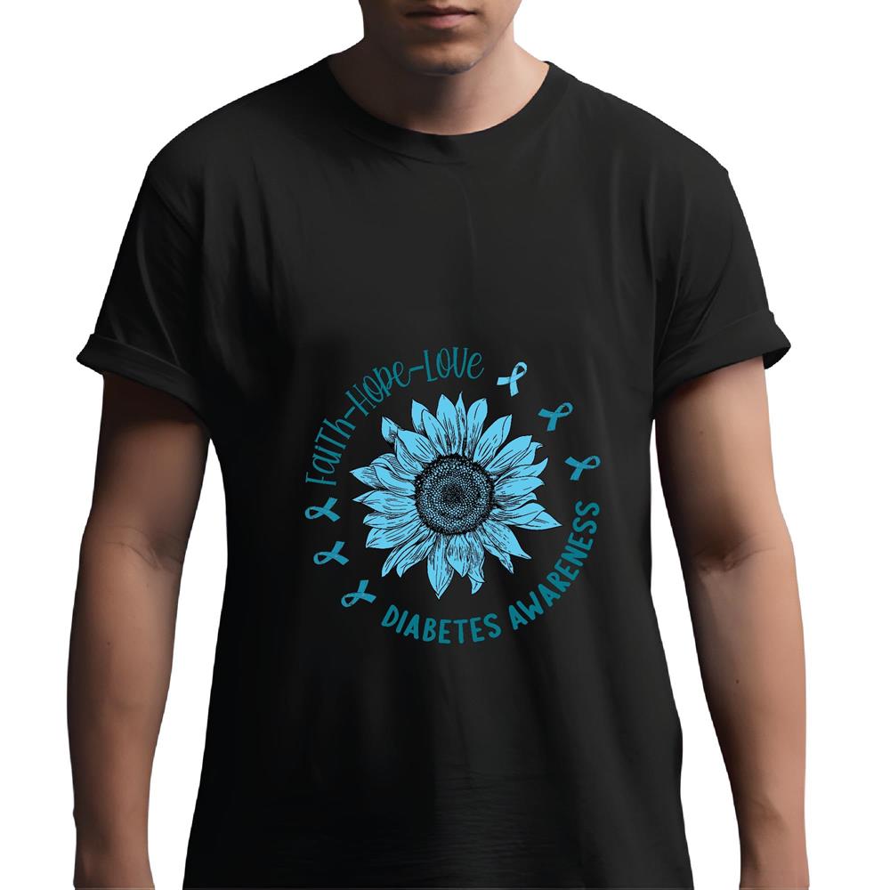 Sunflower Faith Hope Love Diabetes Awareness Gift for Diabetics Men Women Black Multicolor T shirt