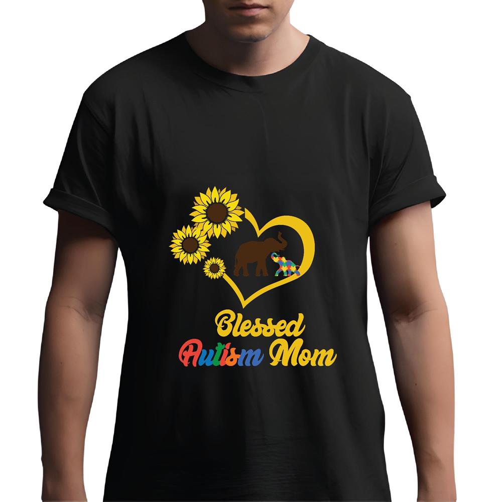 Sunflower Elephant Blessed Autism Mom Gift for Supportive Moms Men Women Black Multicolor T shirt