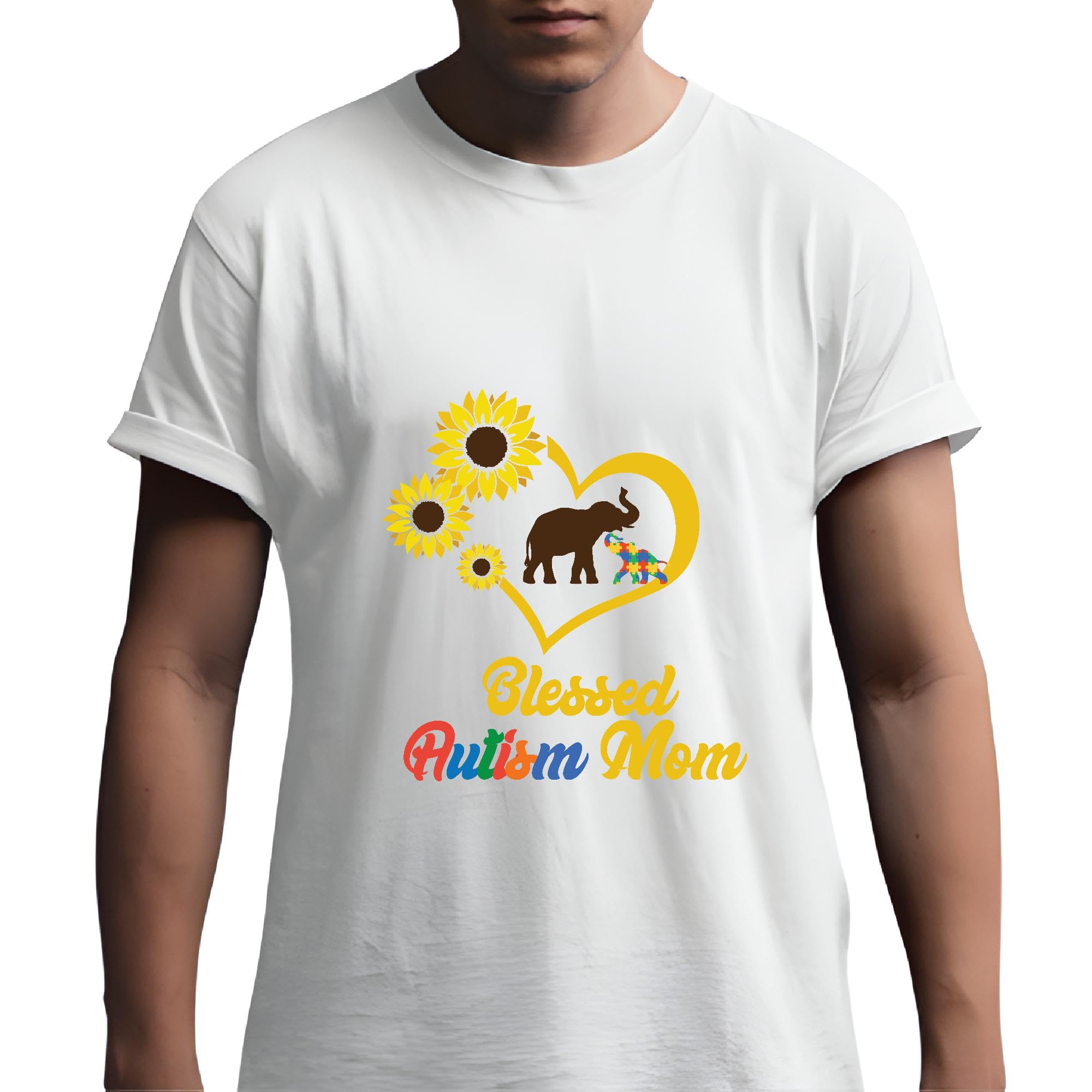 Sunflower Elephant Blessed Autism Mom Gift for Supportive Moms Men Women White Gray Multicolor T shirt