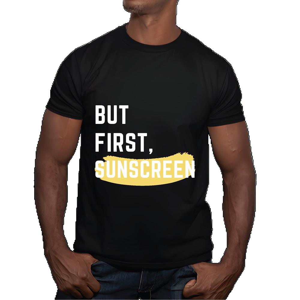 Sunscreen Gift for Skincare Addict But First Sunscreen Saying Men Women Black Multicolor T shirt