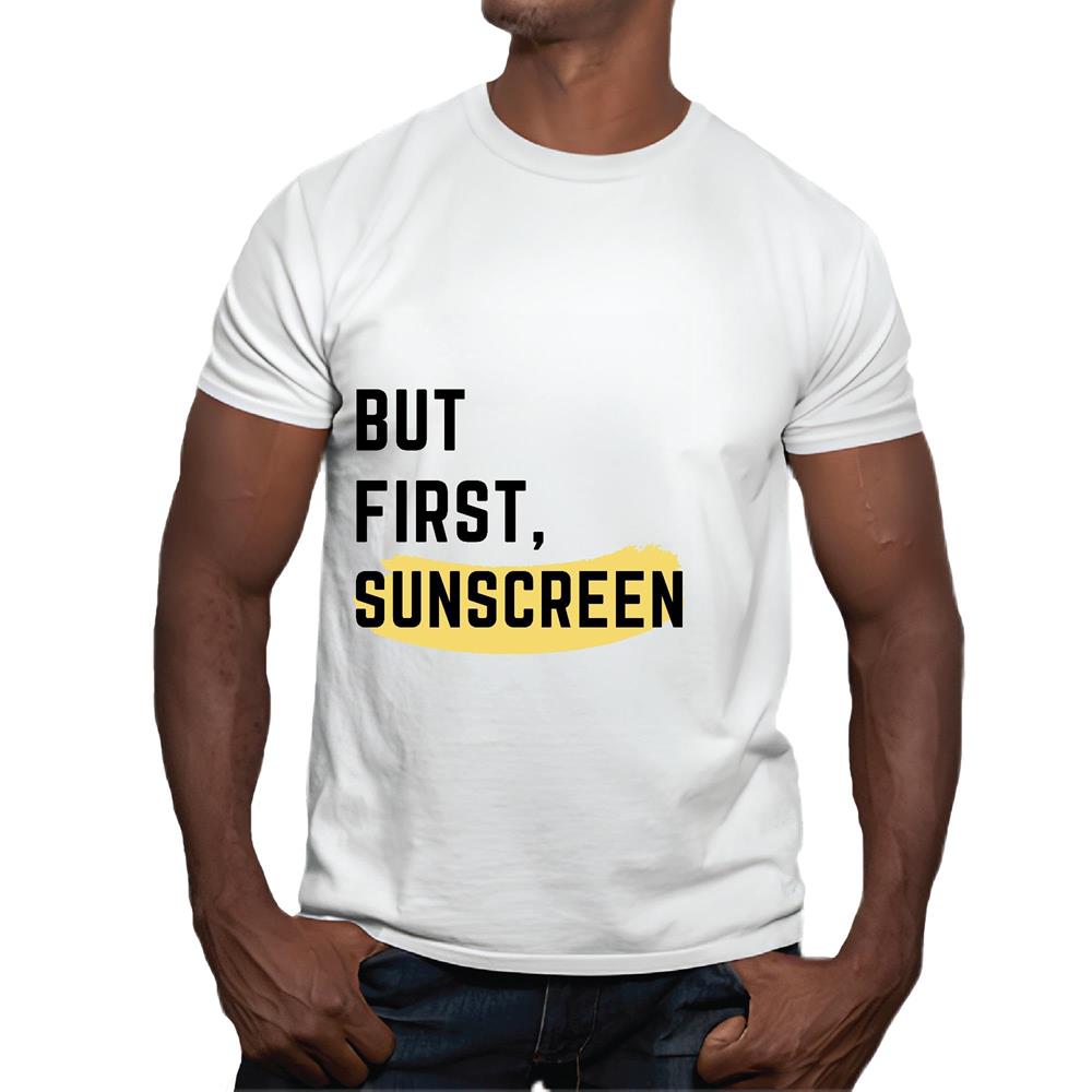 Sunscreen Gift for Skincare Addict But First Sunscreen Saying Men Women White Gray Multicolor T shirt