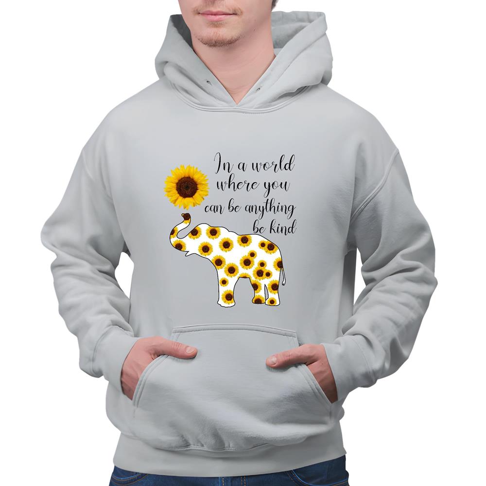 Sunflowers Elephant Gift for Kindness Lovers Floral Elephant Novelty Live Kindly Gray and Muticolor Unisex Hoodie