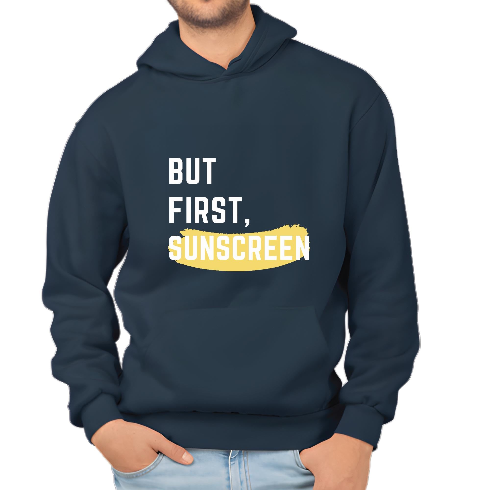 Sunscreen Gift for Skincare Addict But First Sunscreen Saying Navy and Muticolor Unisex Hoodie