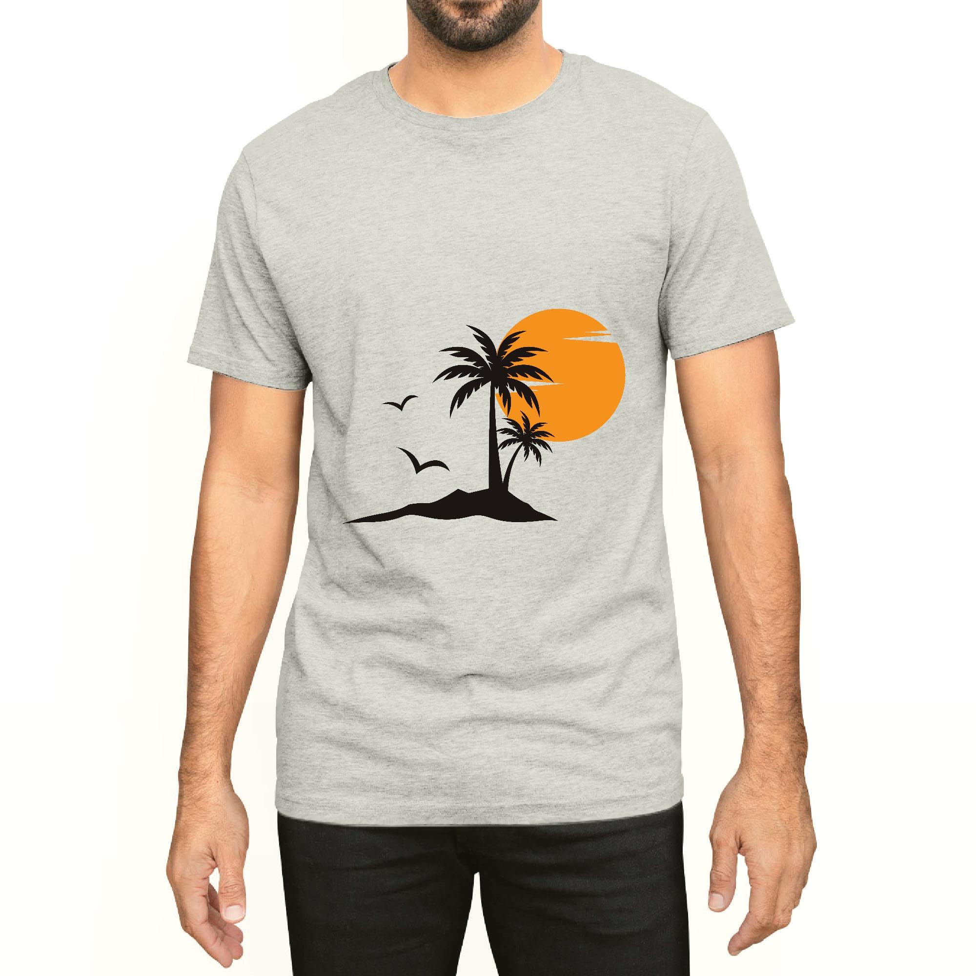 Sunset Beach Palm Funny Summer Vacation Holiday Men Women White Gray Multicolor T shirt