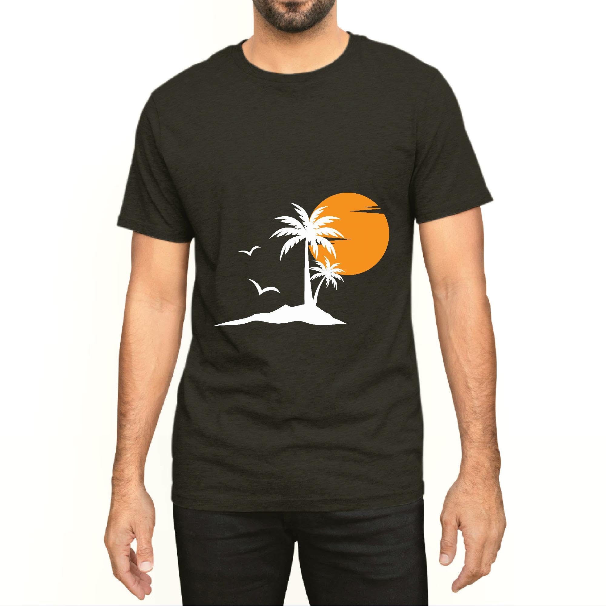Sunset Beach Palm Funny Summer Vacation Holiday Men Women Black Multicolor T shirt