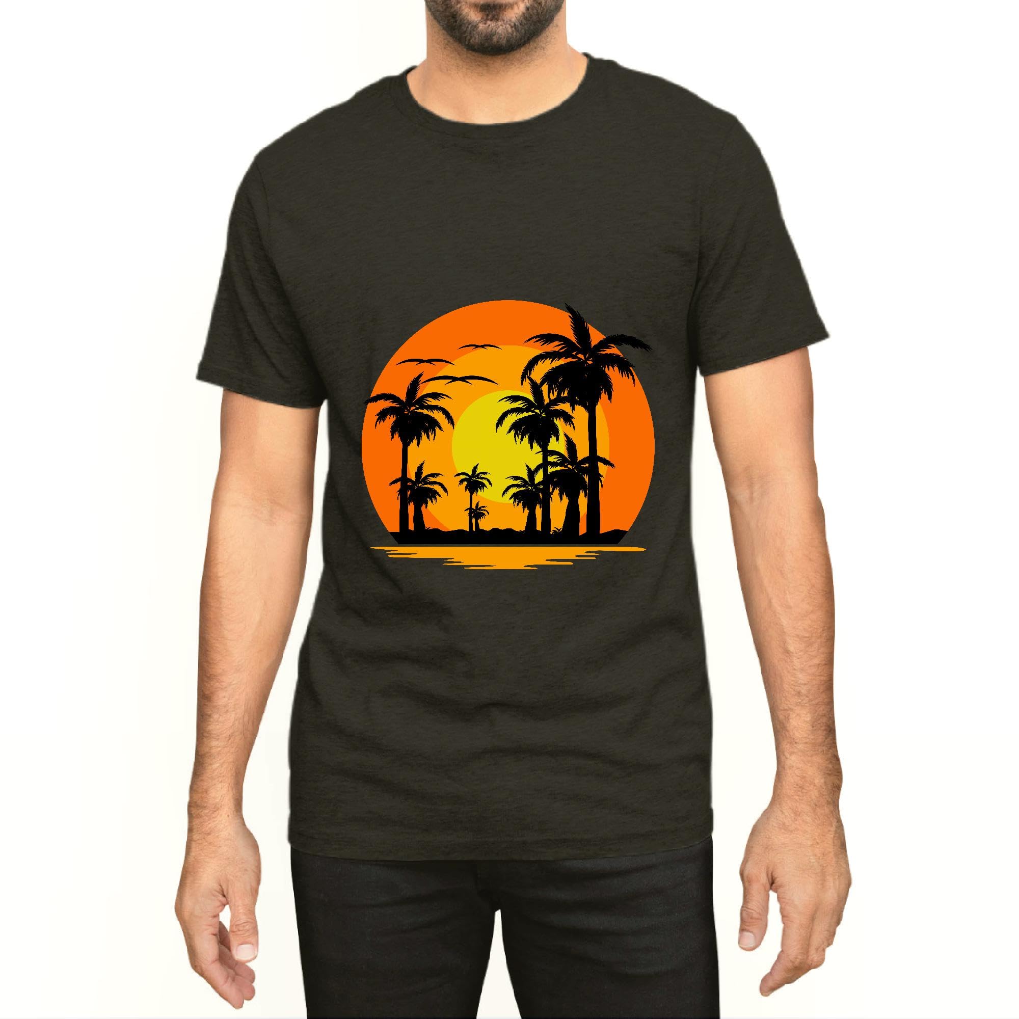 Sunset Beach Palm Funny Summer Vacation Holiday IDea Men Women Black Multicolor T shirt
