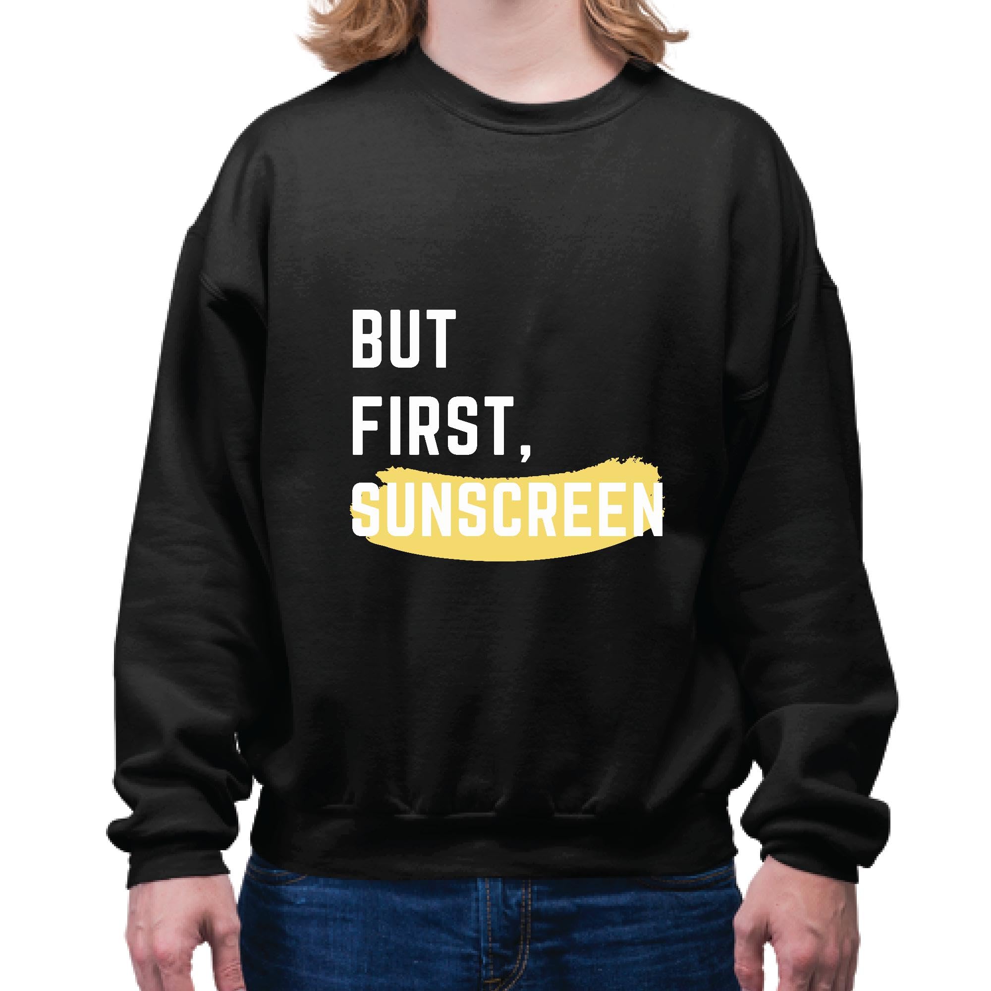 Sunscreen Gift for Skincare Addict But First Sunscreen Saying Navy Black Muticolor Unisex Sweatshirt