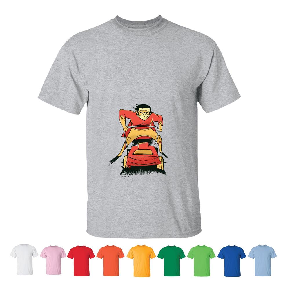 Superhero Lawnmower Gift for Gardeners and Landscapers Lawn and Garden Care Men Women White Gray T shirt