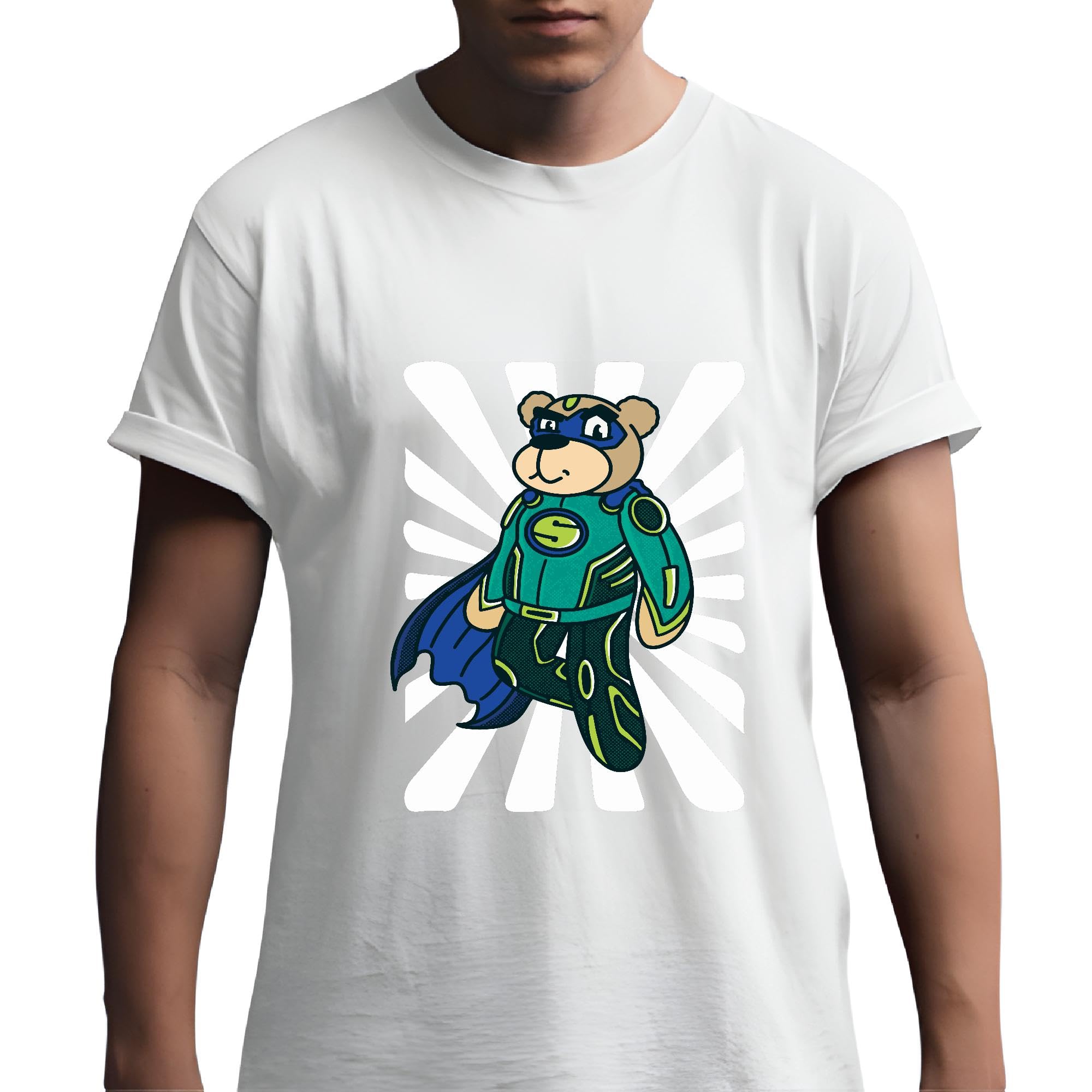 Superbear Superhero Suit Funny Gift for Kids and Adults Men Women White Gray Multicolor T shirt