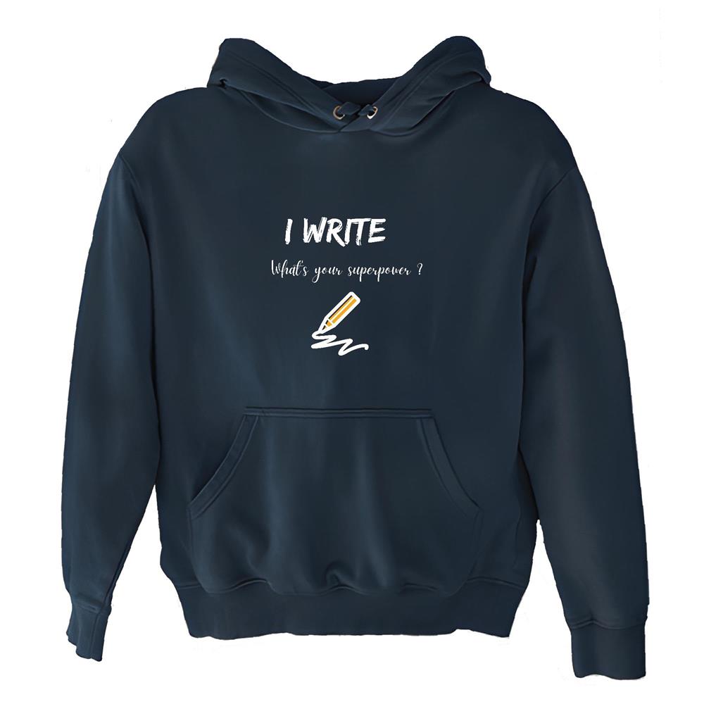 Superpower for Writers Authors Scriveners and Book Lovers Navy and Muticolor Unisex Hoodie