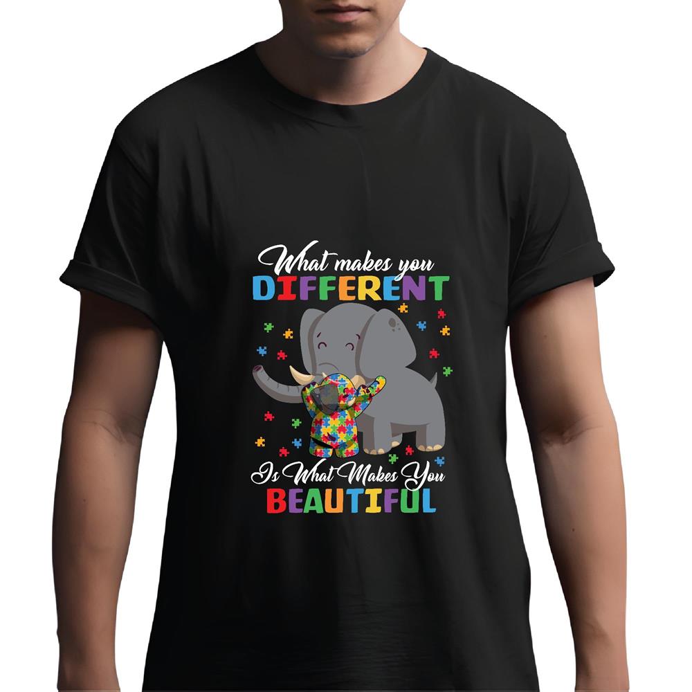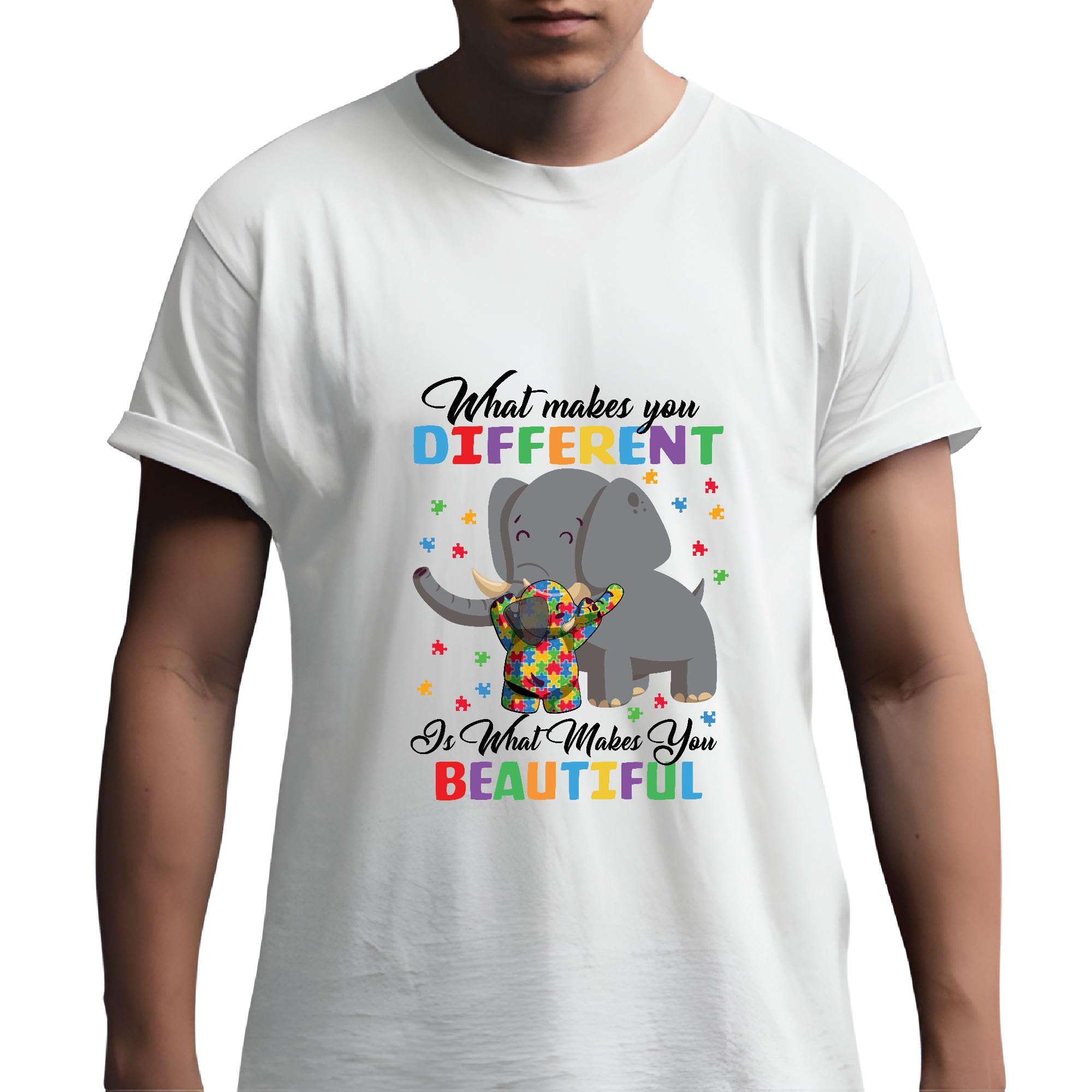 Support Autism Mom What Makes You Different Elephant for Autism Awareness Month Men Women White Gray Multicolor T shirt