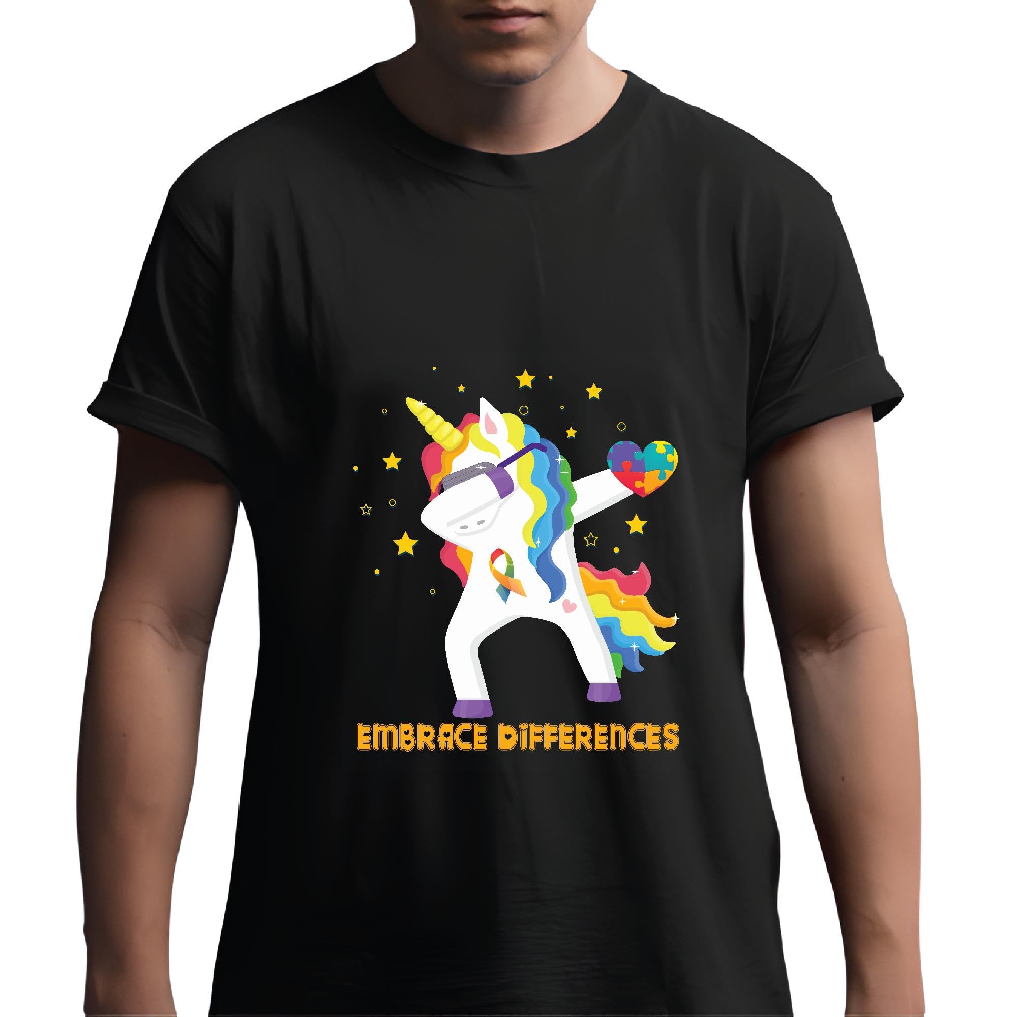 Support Autism Unicorn Embrace Differences with Dabbing Puzzle Design Men Women Black Multicolor T shirt