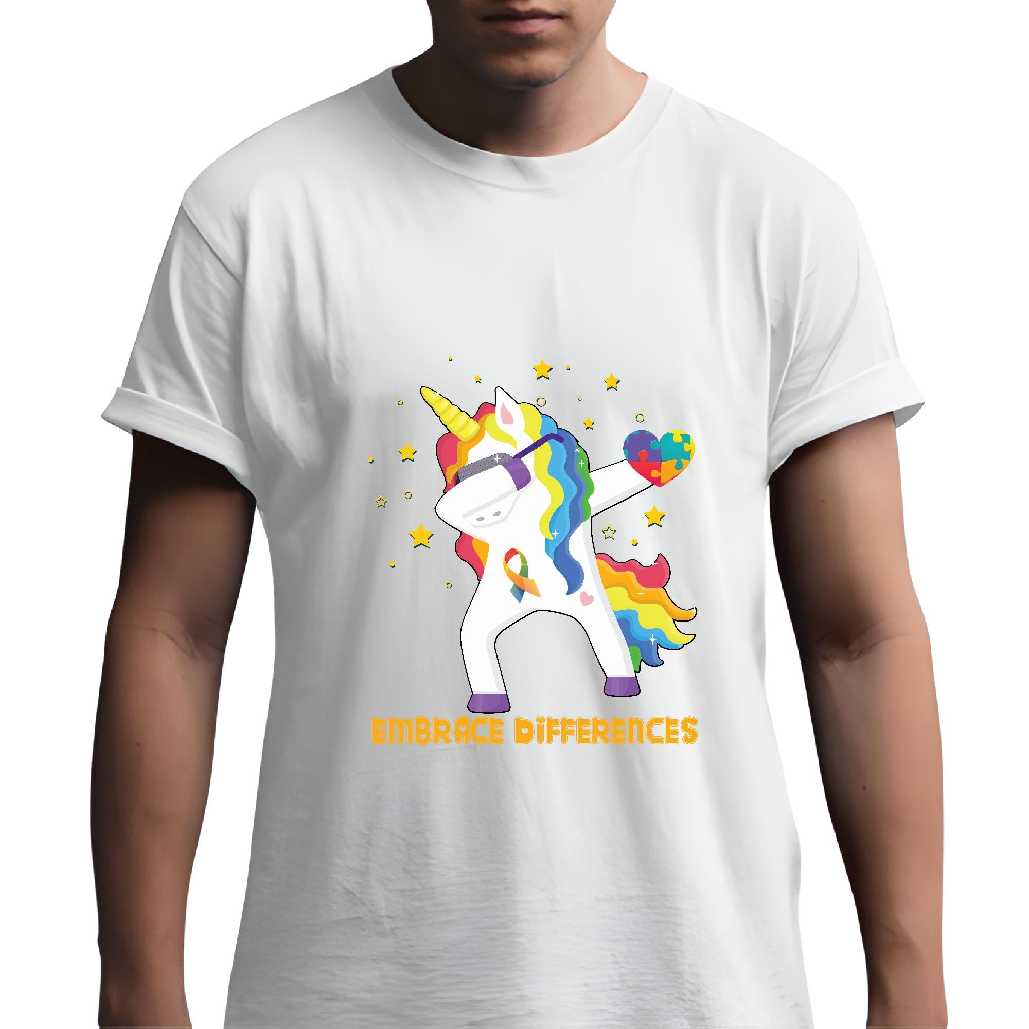 Support Autism Unicorn Embrace Differences with Dabbing Puzzle Design Men Women White Gray Multicolor T shirt