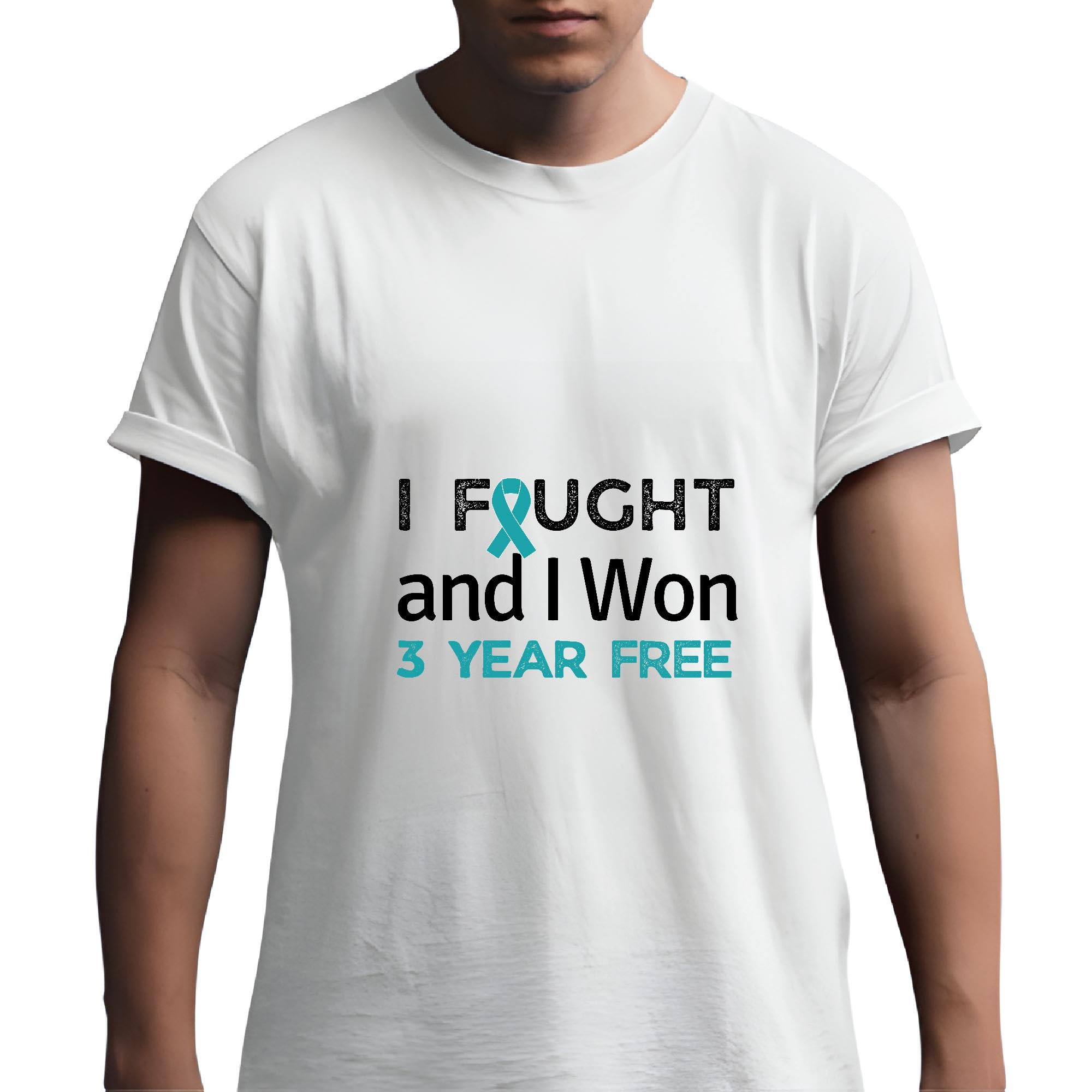 Survivor Ovarian Cancer Ribbon Gift3 Year Free for Fighters Men Women White Gray Multicolor T shirt