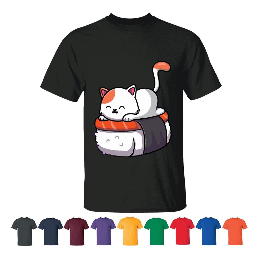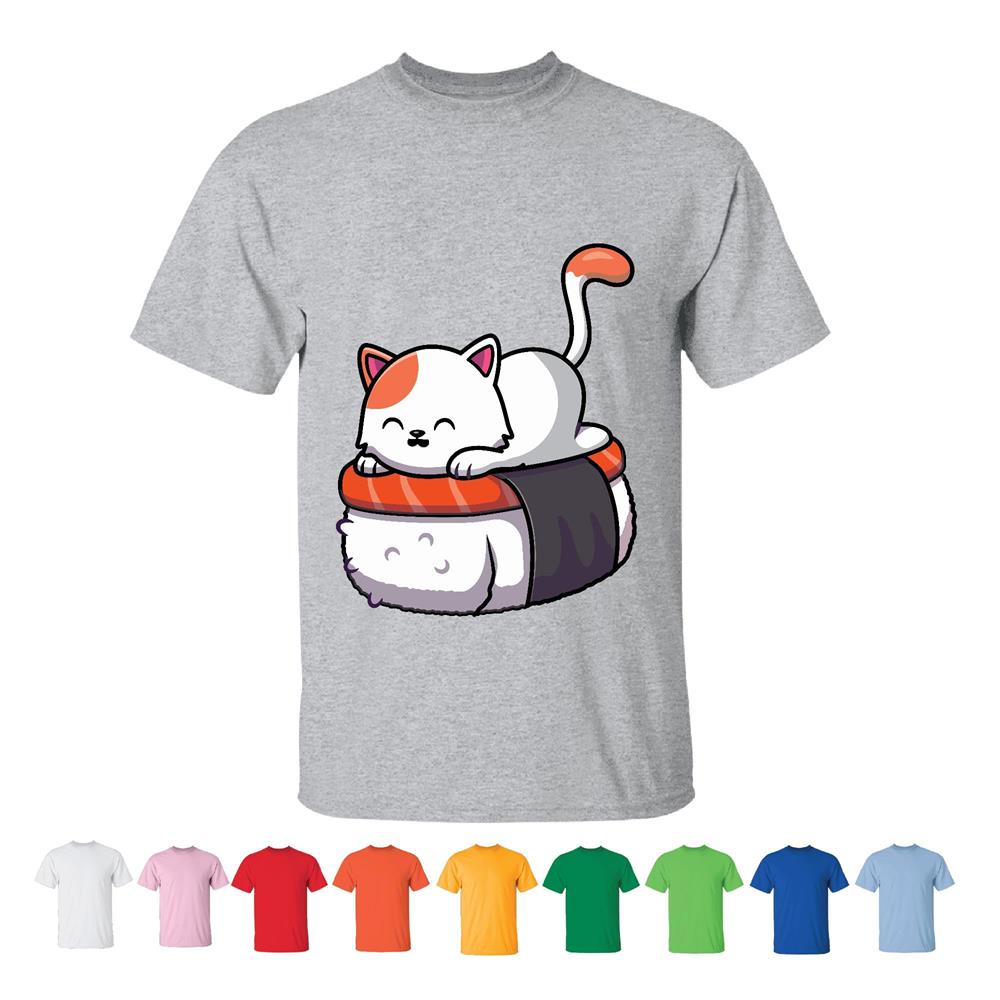 Sushi Cat Anime Manga cute Men Women White Gray T shirt