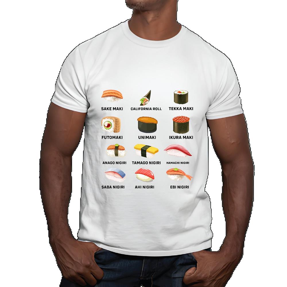 Sushi cute Sushi types of Sashimi for food lover Men Women White Gray Multicolor T shirt