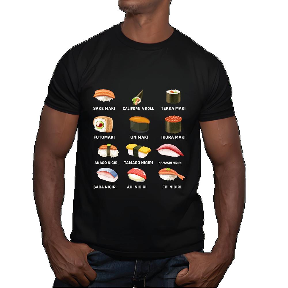 Sushi cute Sushi types of Sashimi for food lover Men Women Black Multicolor T shirt