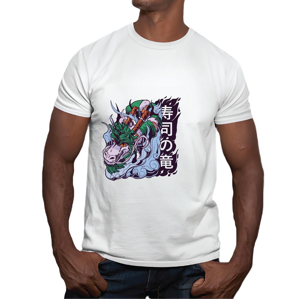 Sushi Dragon Illustration Gift for Art Lovers Dragon Fans Unite Men Women White Gray Multicolor T shirt
