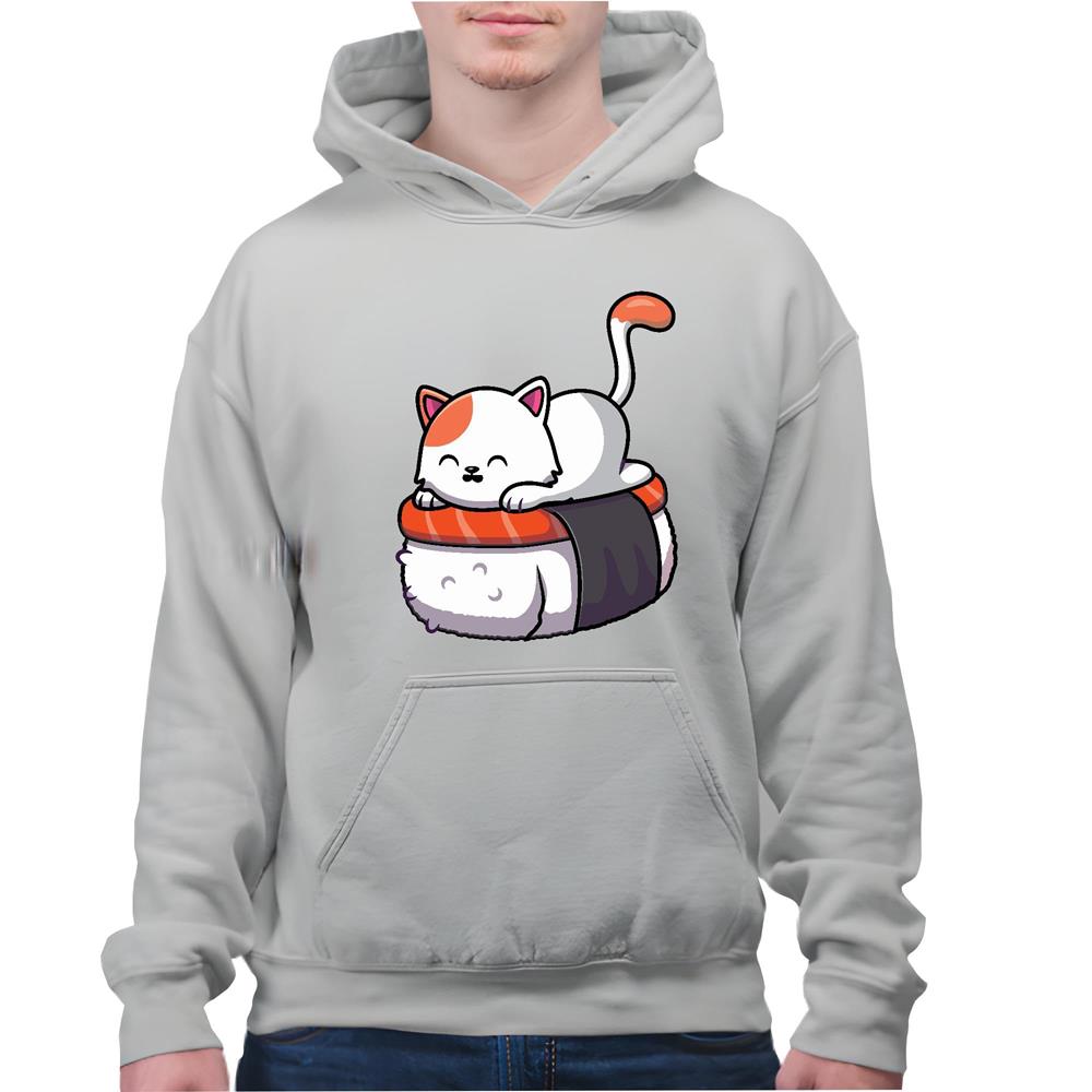 Sushi Cat Anime Manga cute Gray and Muticolor Unisex Hoodie