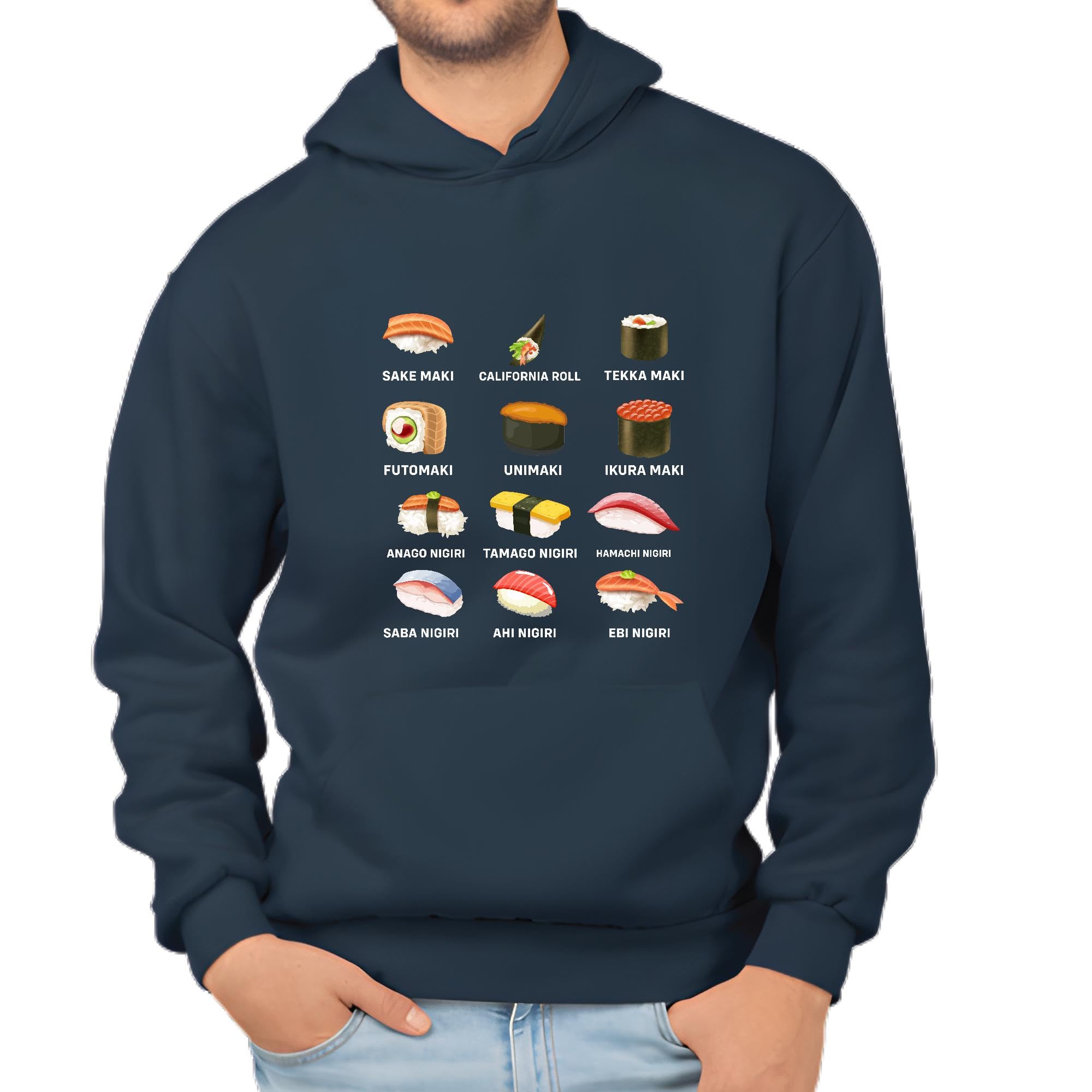 Sushi cute Sushi types of Sashimi for food lover Navy and Muticolor Unisex Hoodie