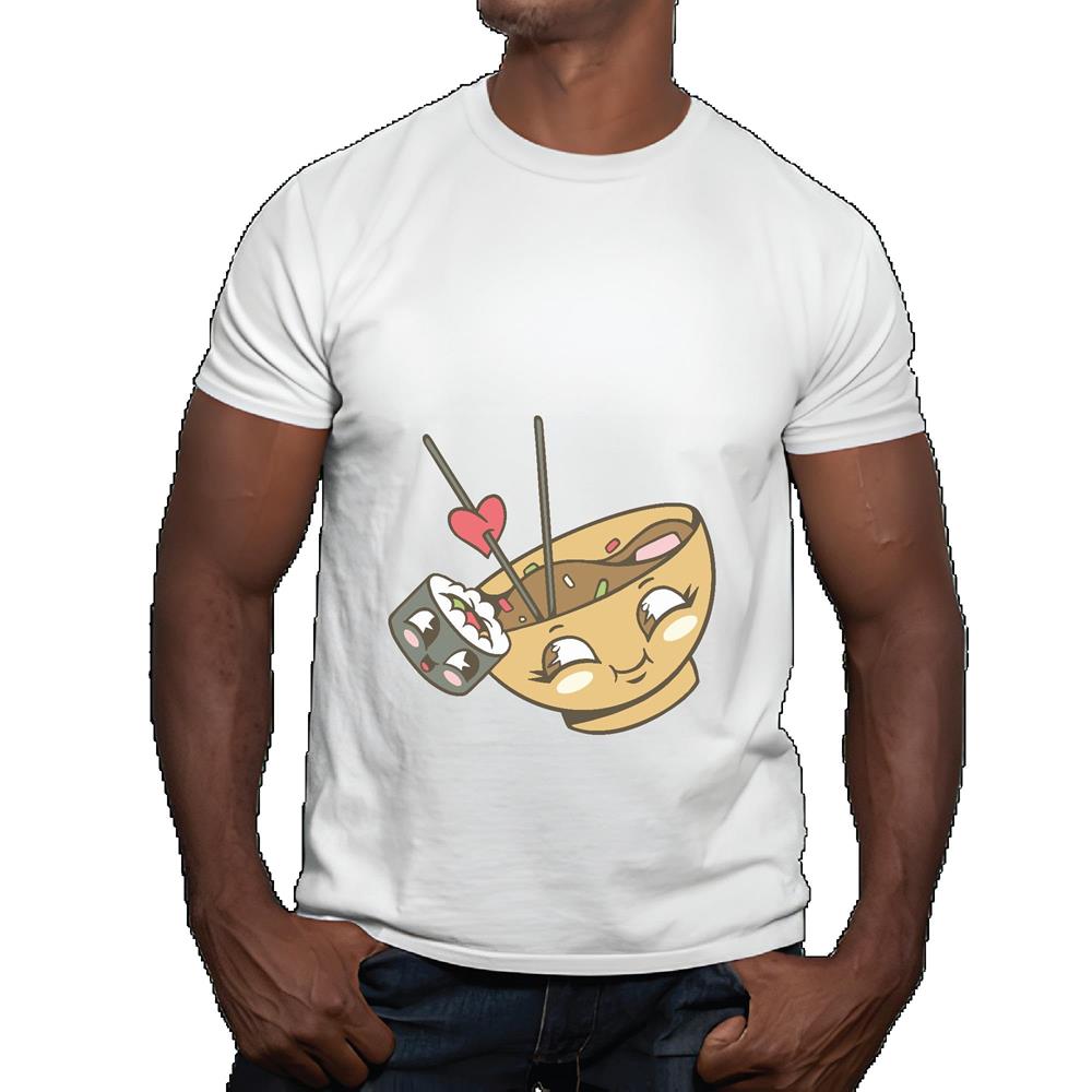 Sushi Lovers Gift Cuddling Bowl of Ethnic Food for Foodies Men Women White Gray Multicolor T shirt