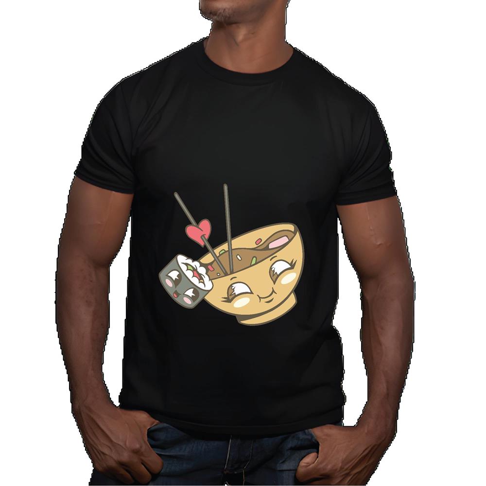 Sushi Lovers Gift Cuddling Bowl of Ethnic Food for Foodies Men Women Black Multicolor T shirt