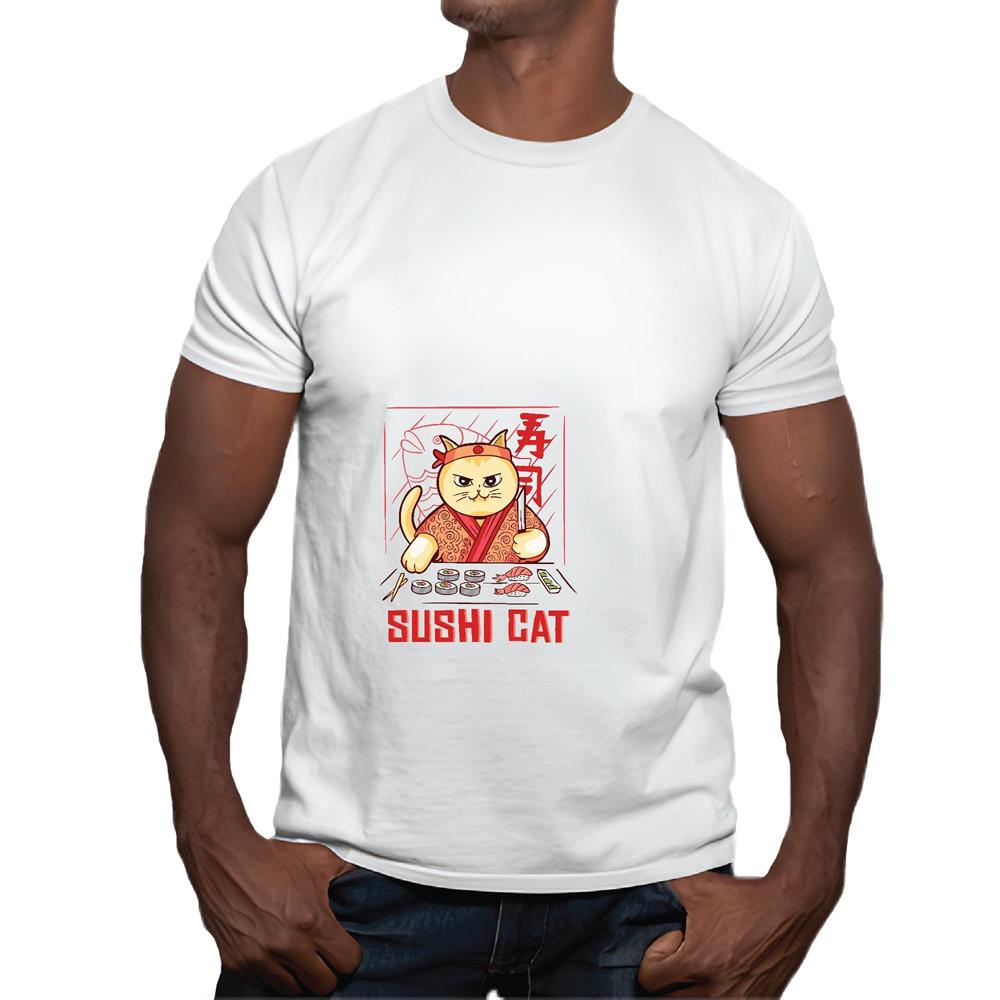 Sushi Kitten Gift Cat Making Sushi Illustration Quote Pet Lovers Gift Idea Men Women White Gray Multicolor T shirt