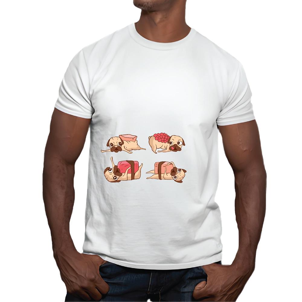 Sushi Gift Idea Cute Illustration of Four Sushi Pugs for Sushi Lovers Men Women White Gray Multicolor T shirt