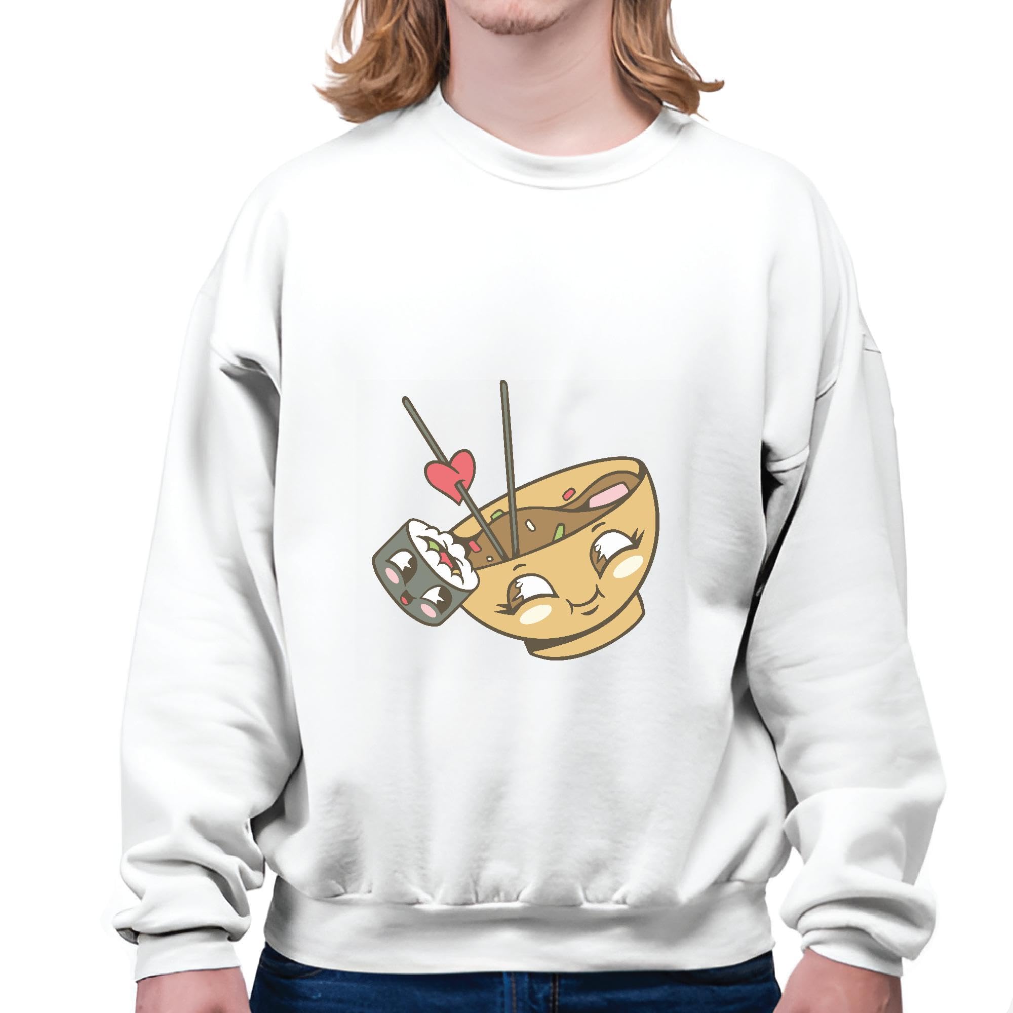 Sushi Lovers Gift Cuddling Bowl of Ethnic Food for Foodies Grey White Muticolor Unisex Sweatshirt