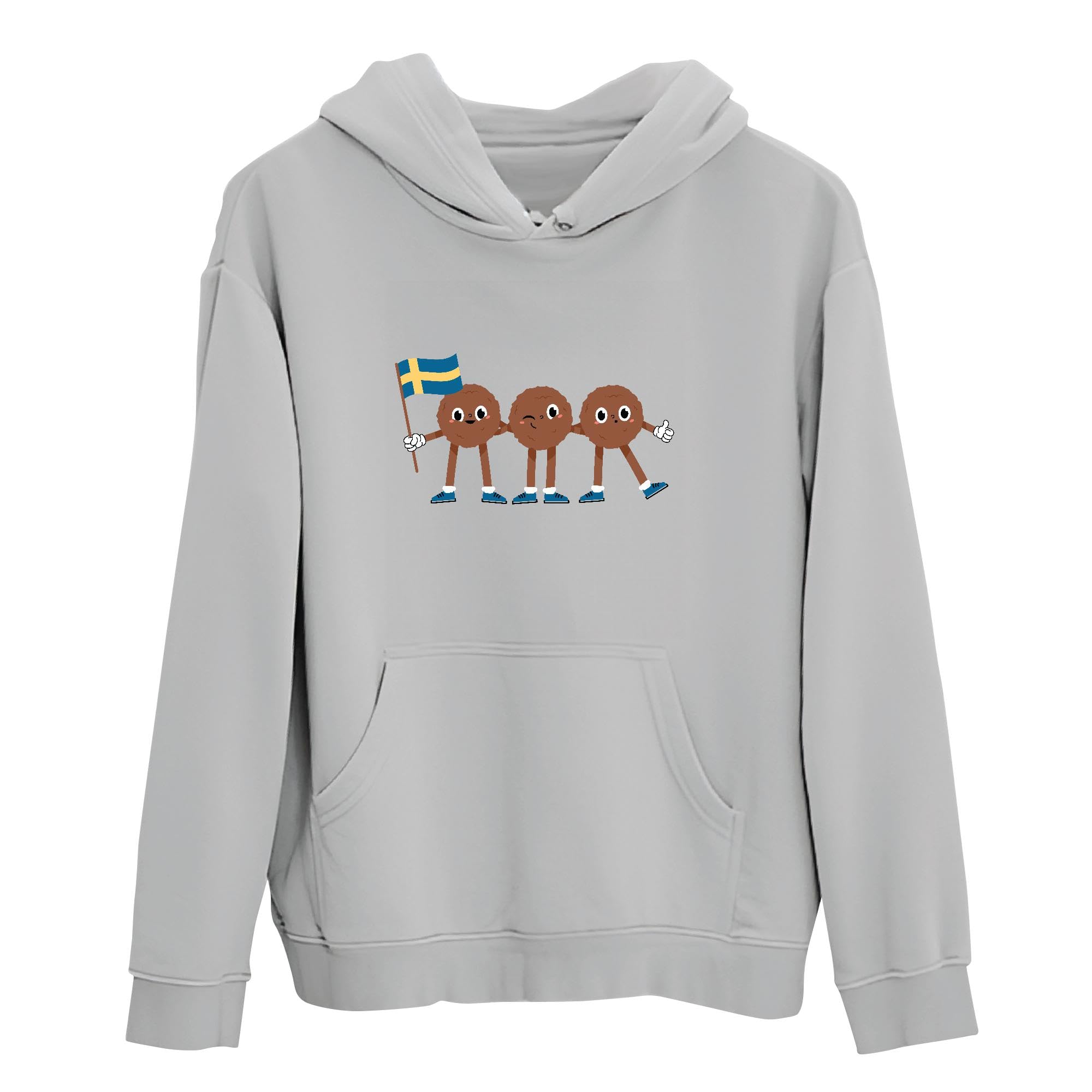 Swedish Meatball Gift for Culture Lovers 3 Cute Meatballs Holding Swedish Flag Gray and Muticolor Unisex Hoodie