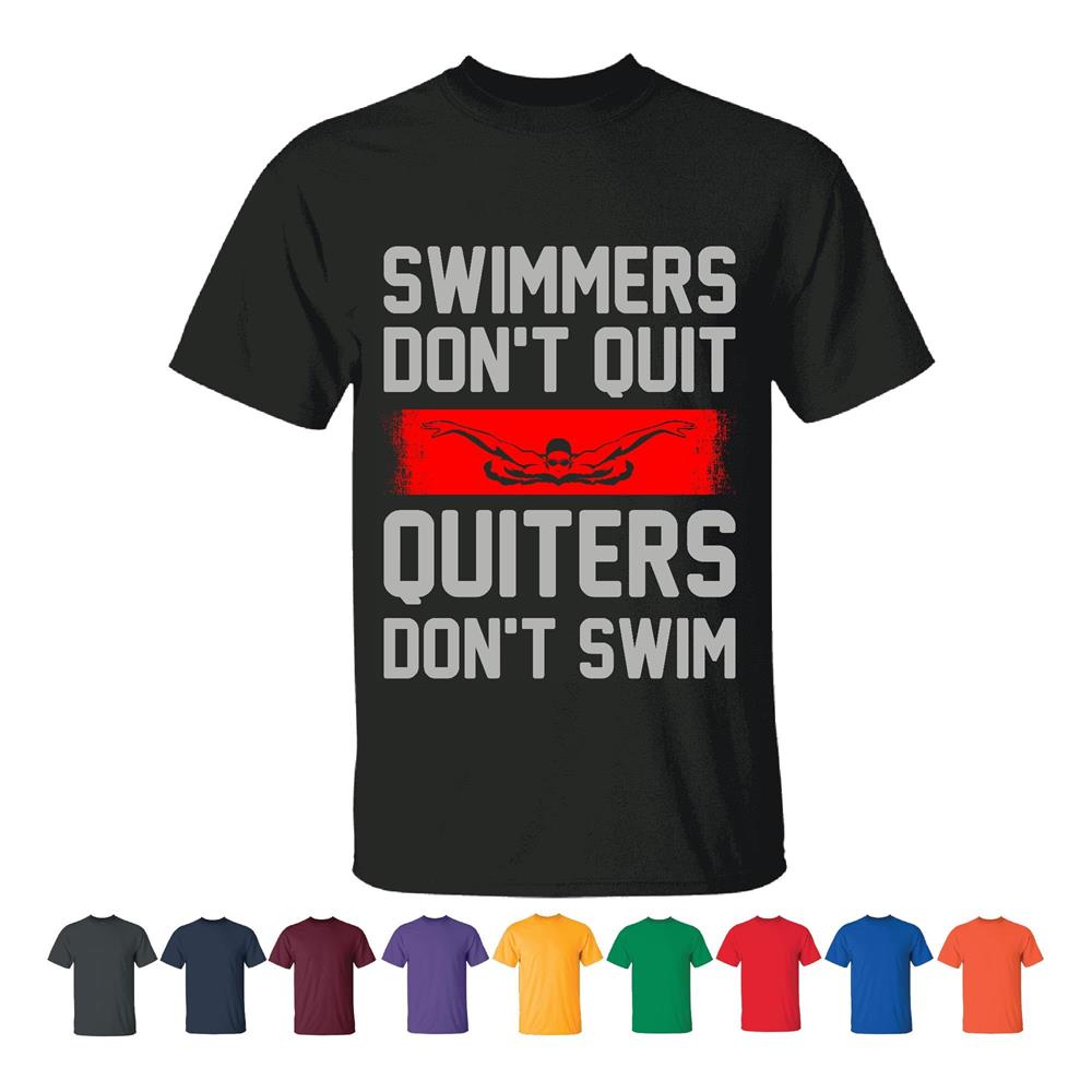 Swimming Motivational Gift Quitters Do not Swim Just Keep Swimming Perfect Gift for Swimmers Men Women Black T shirt