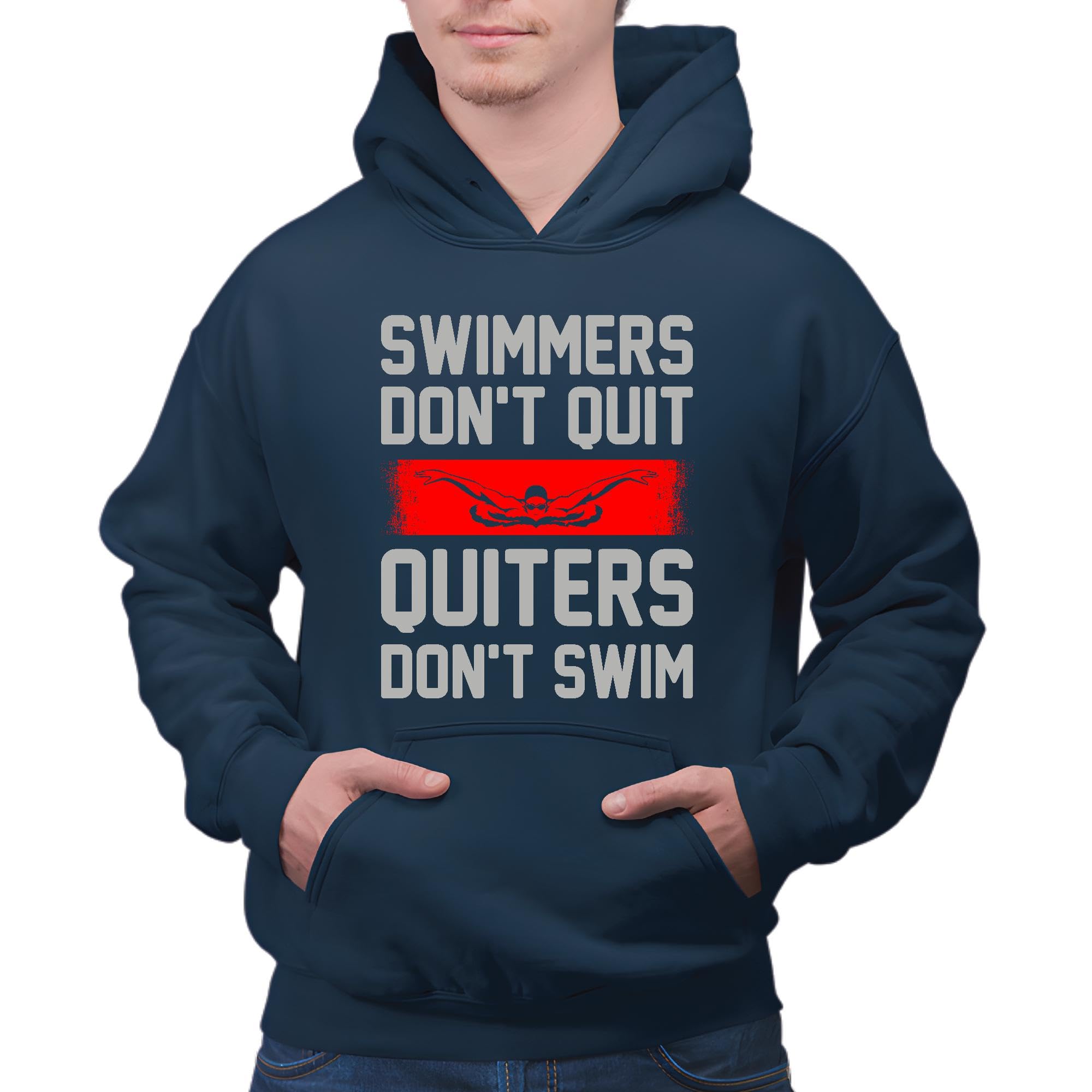 Swimming Motivational Gift Quitters Do not Swim Just Keep Swimming Perfect Gift for Swimmers Navy and Muticolor Unisex Hoodie
