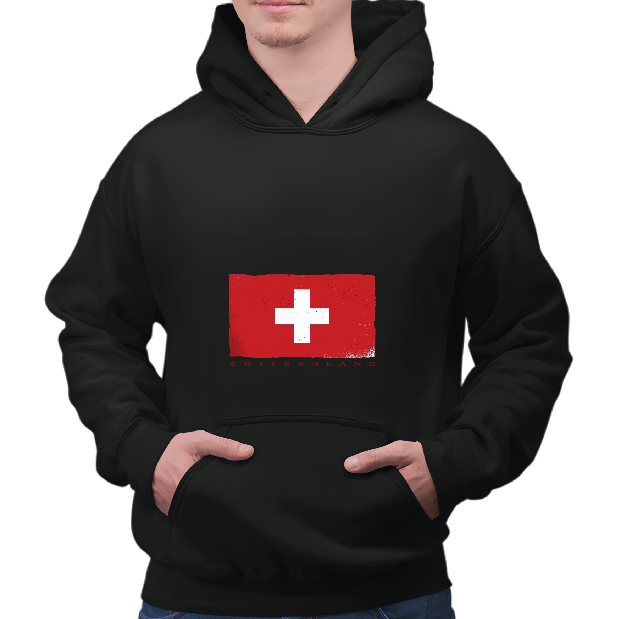 Swiss Flag Gift for Swiss Pride for Swiss Citizens and Supporters Black and Muticolor Unisex Hoodie