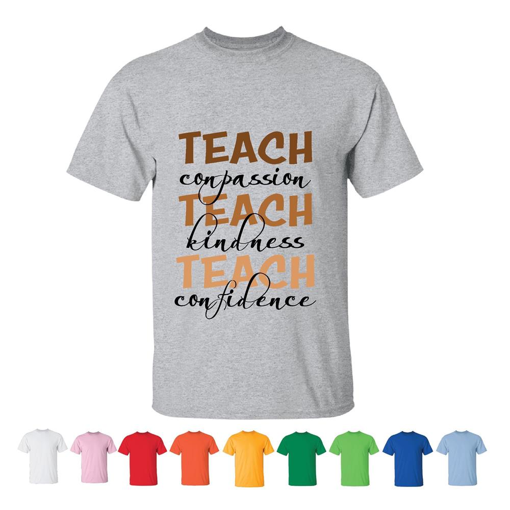 Teach Compassion Kindness Confidence Black History Month Men Women White Gray T shirt