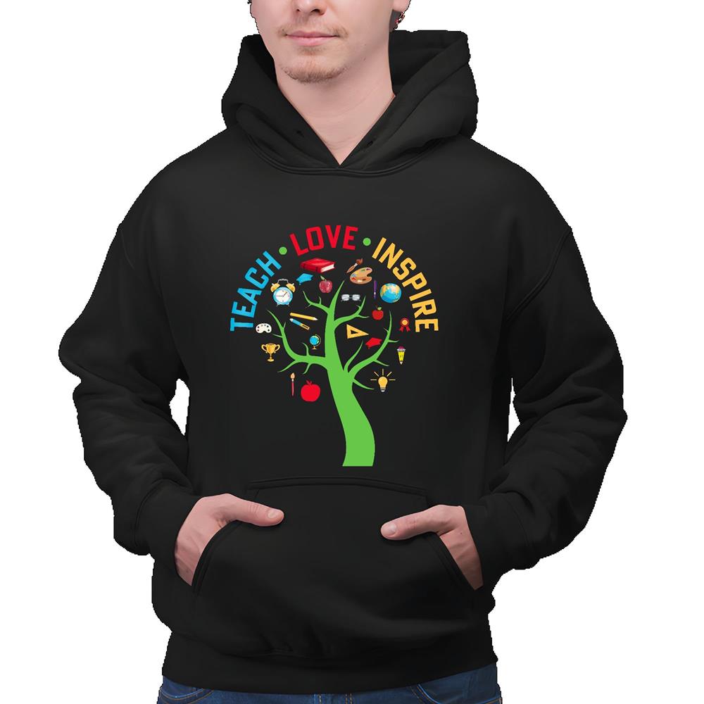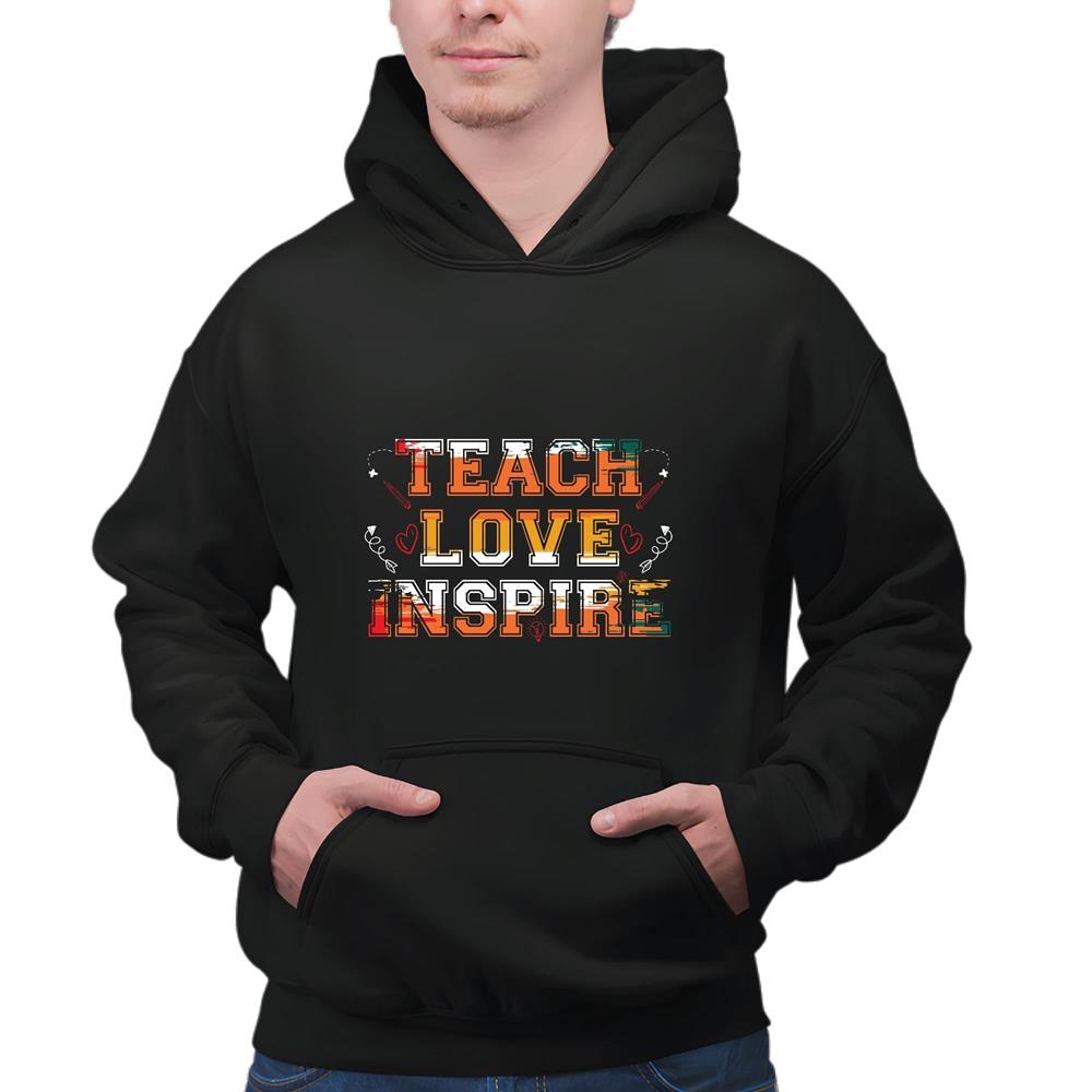 Teach Love Inspire for Teacher Kindergarten Black and Muticolor Unisex Hoodie