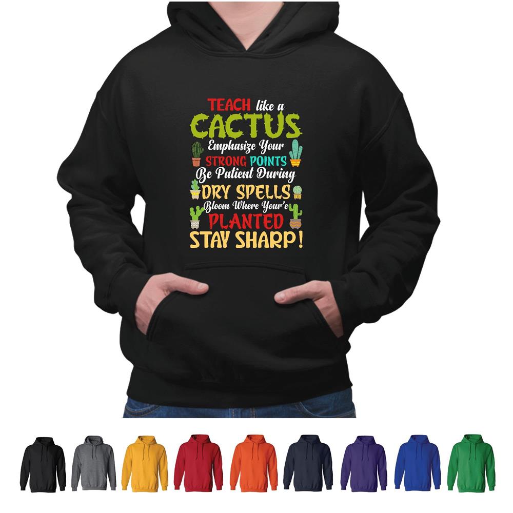 Teach like a Cactus funny Teaching Coaching for Instructor Teacher Plant lover Black and Muticolor Unisex Hoodie