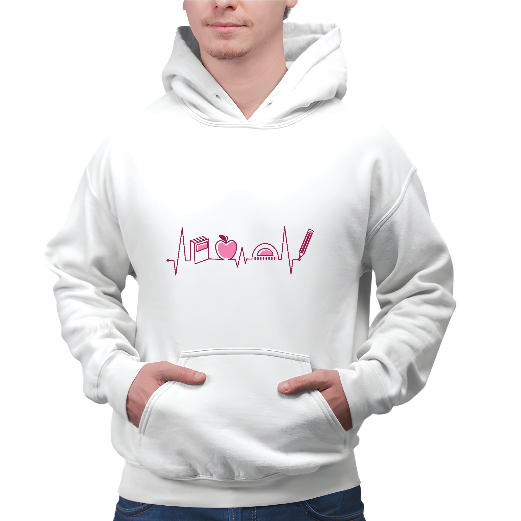 Teacher Appreciation Gift Heartbeat with Teacher Elements Inside School Supplies Educators Gray and Muticolor Unisex Hoodie