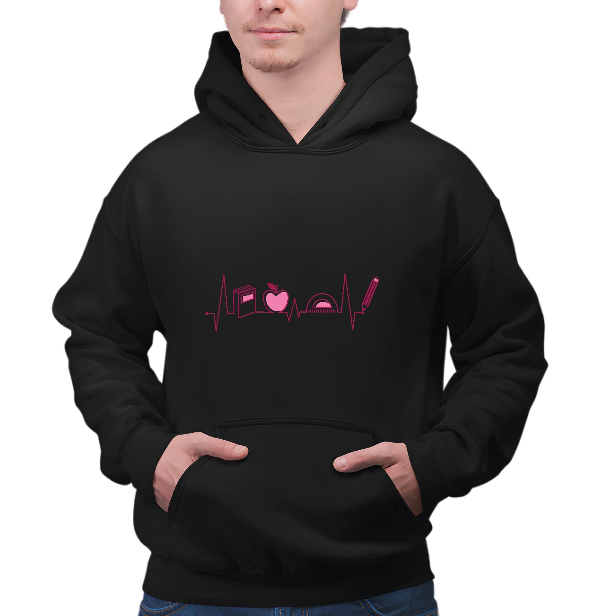 Teacher Appreciation Gift Heartbeat with Teacher Elements Inside School Supplies Educators Black and Muticolor Unisex Hoodie