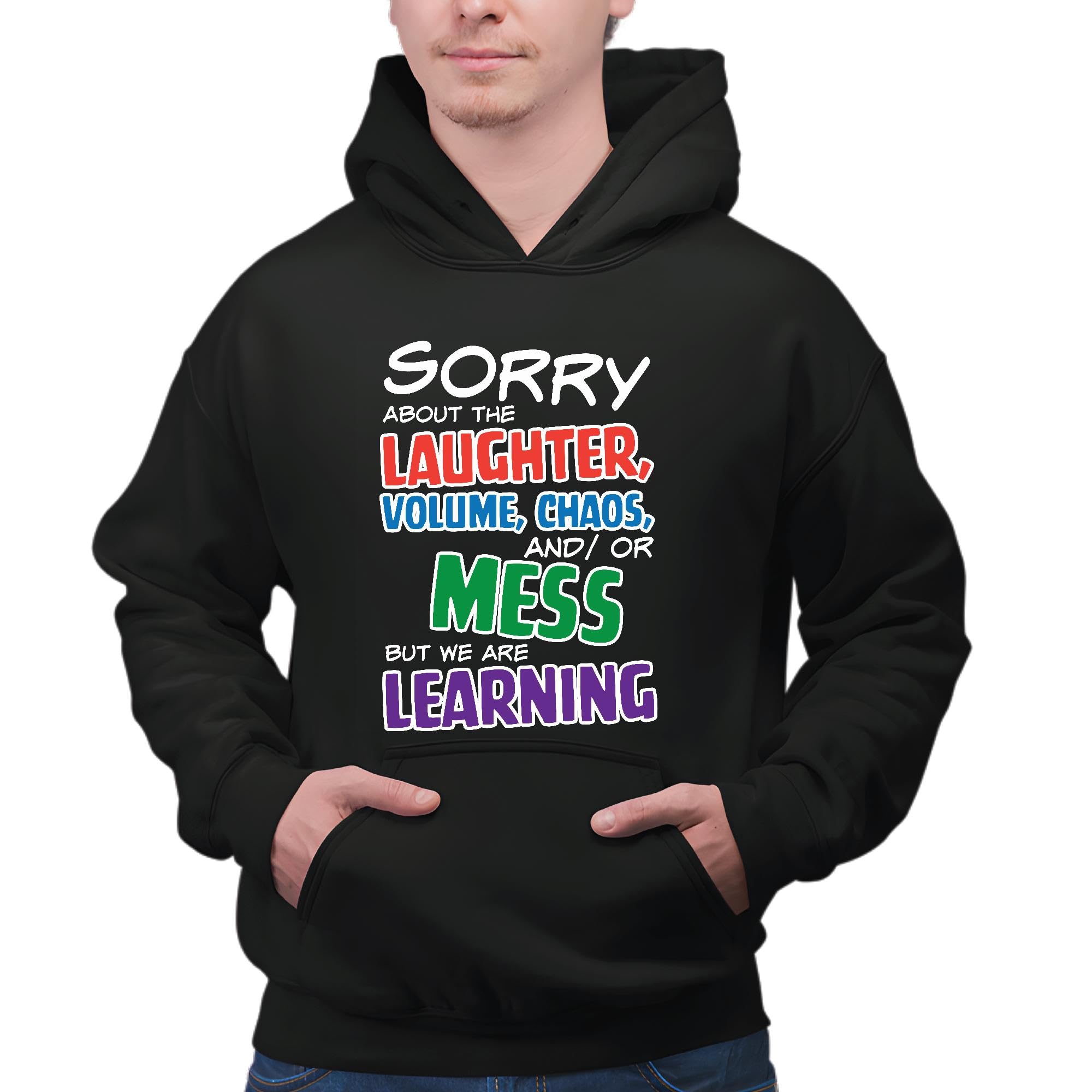 Teacher Appreciation Gift Idea for Learning Teachers Chaos and Mess Volume Laughter Black and Muticolor Unisex Hoodie