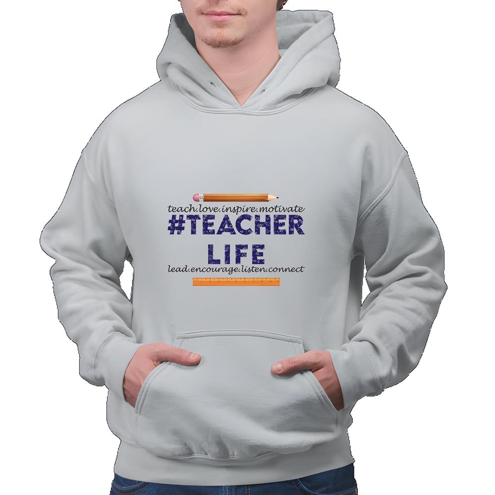 Teacher Gift Love Inspirer Listen Connect Perfect Gift for Educators Gray and Muticolor Unisex Hoodie